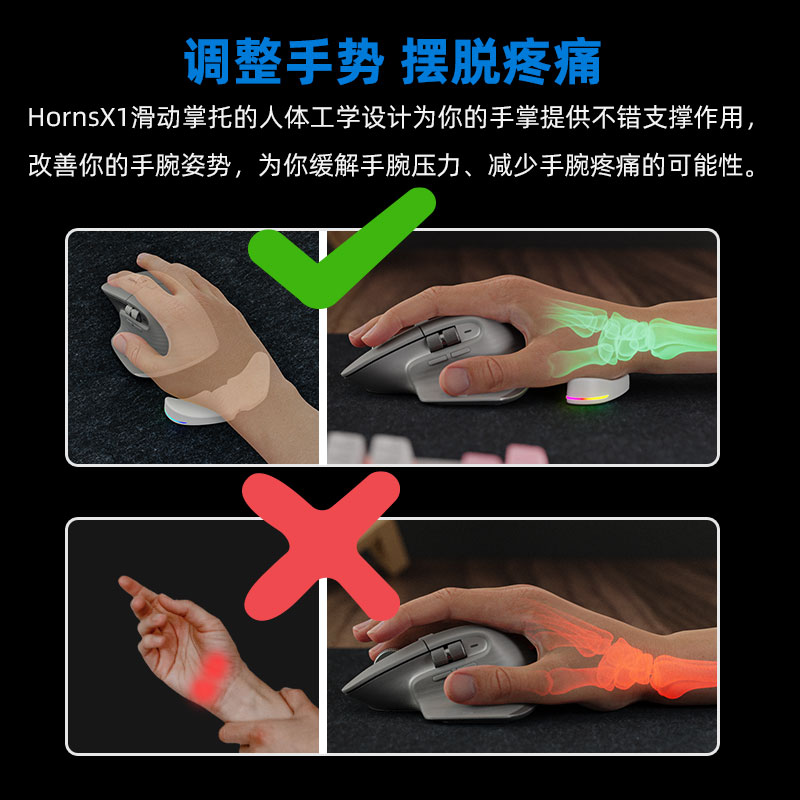 📚 IFYOO HornsX1滑动掌托RGB灯光鼠标腕托人体工学手托垫怒喵同款
