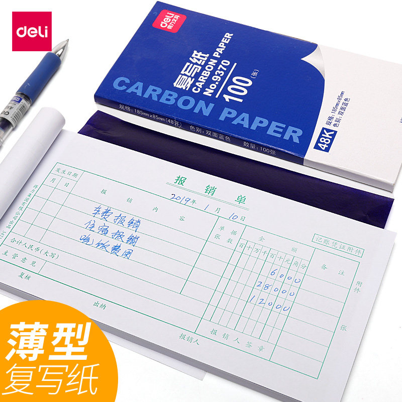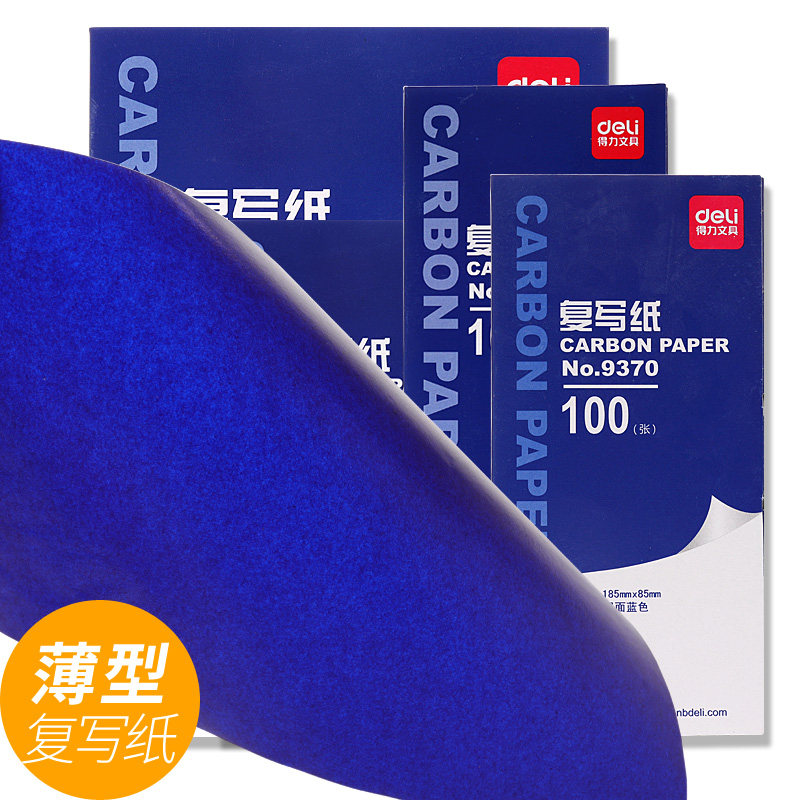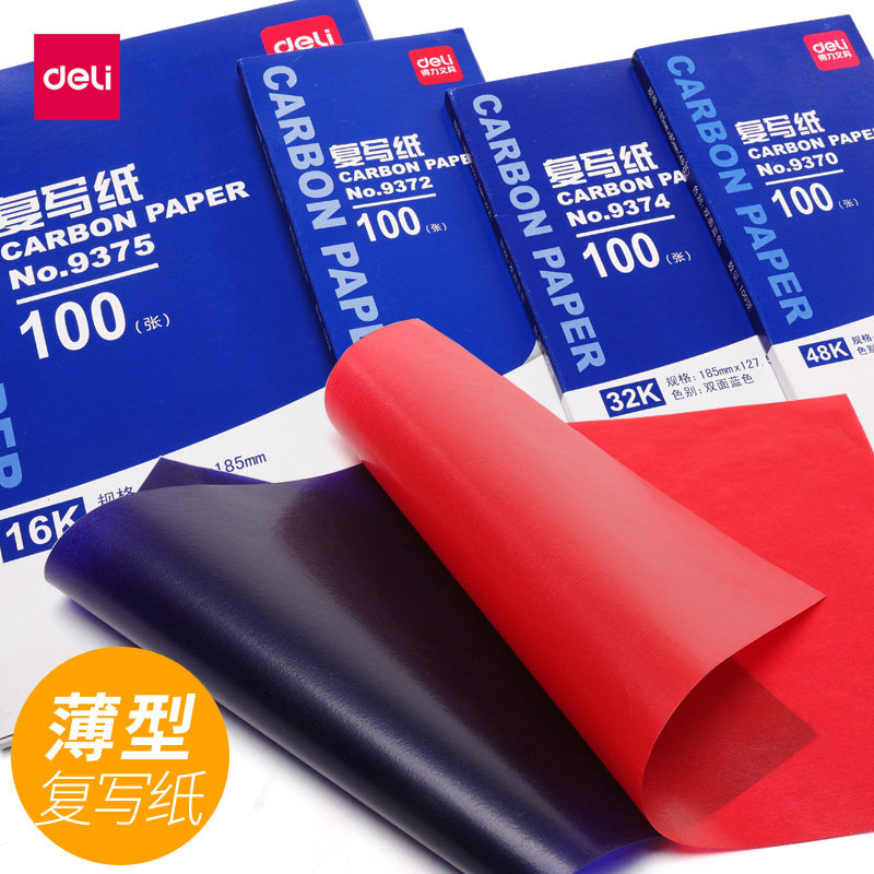 📚 得力薄型复写纸财务专用印蓝纸红色双面印纸罚抄蓝印纸无碳复印纸蓝拓蓝纸印蓝纸染页双面蓝色写票据办公用品