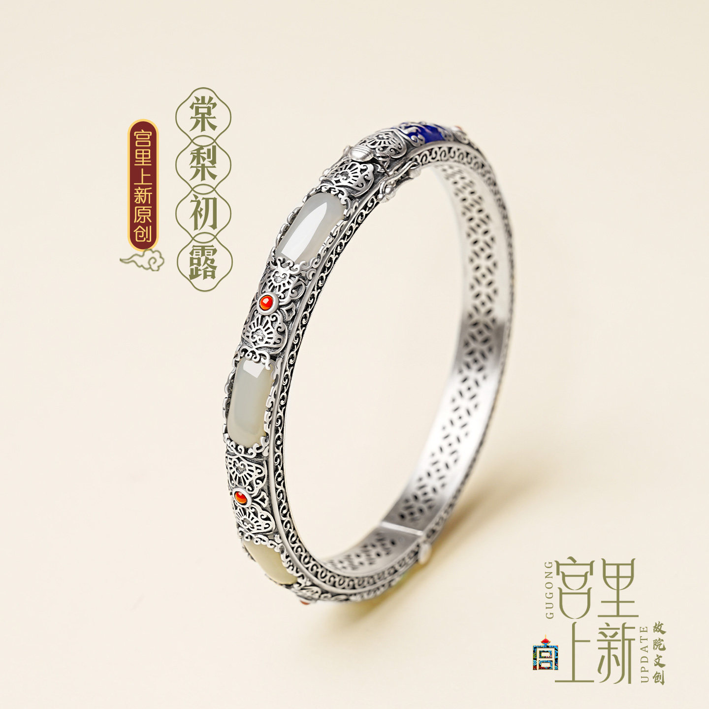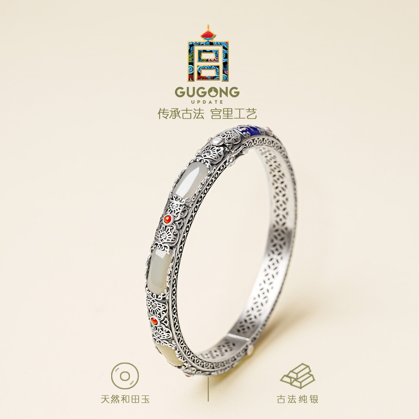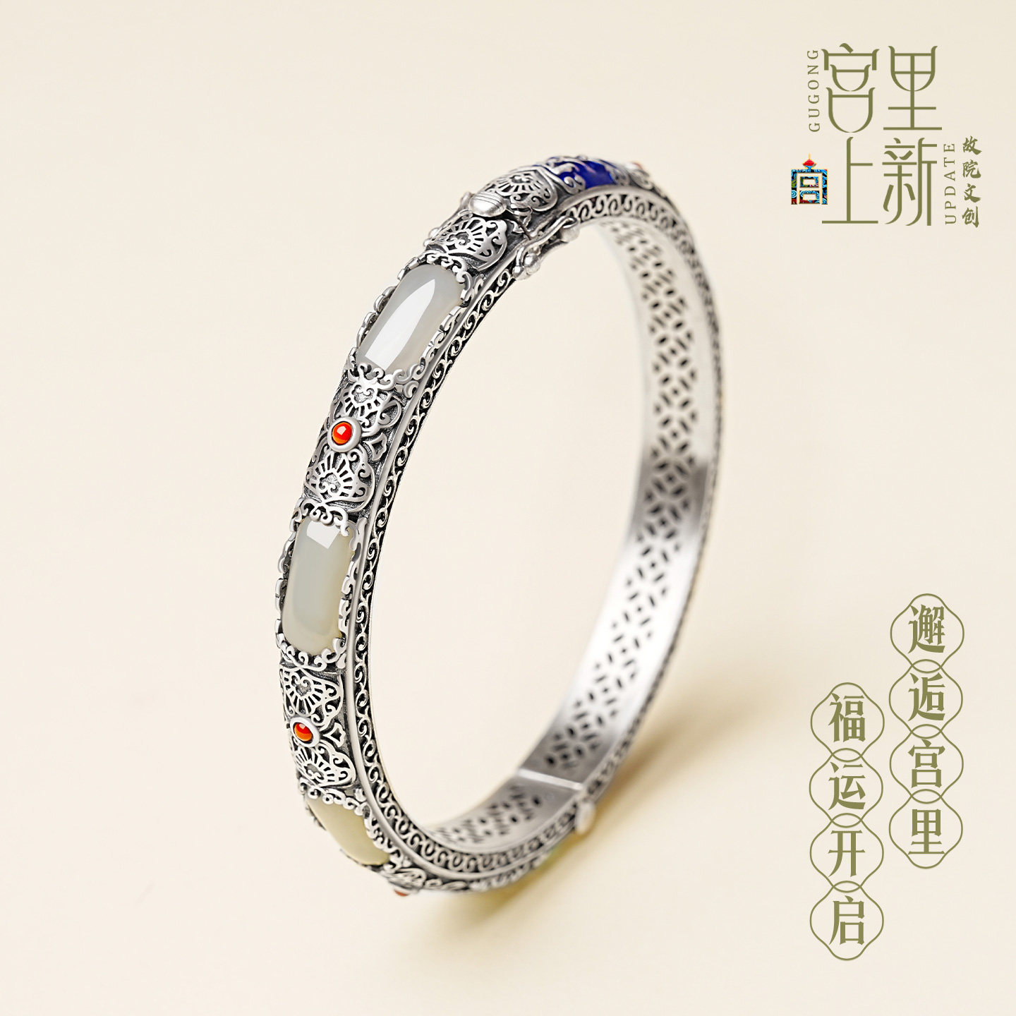 📚 宫里上新银手镯女款纯银镯子古法玉手镯国风银镯子妈妈款生日礼物