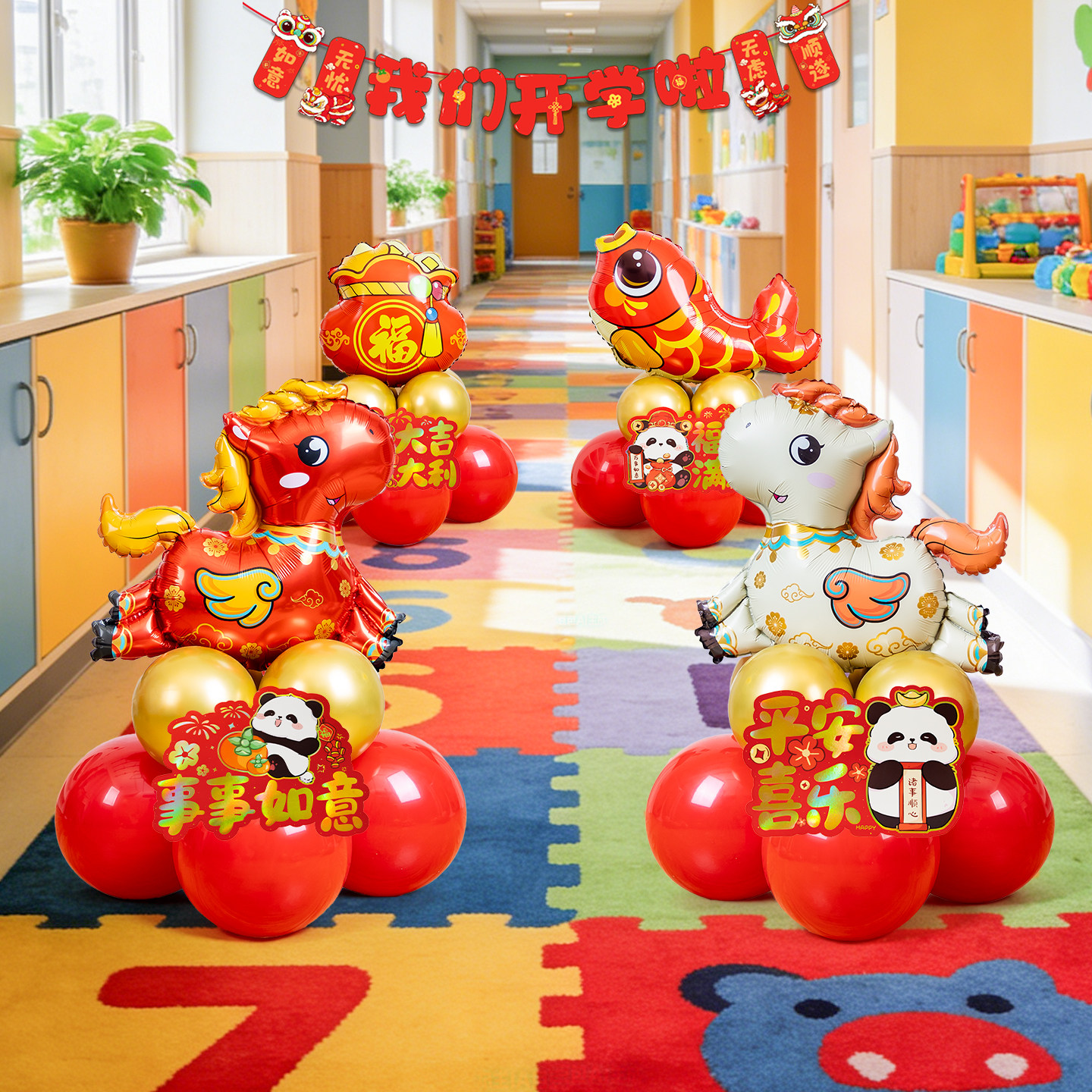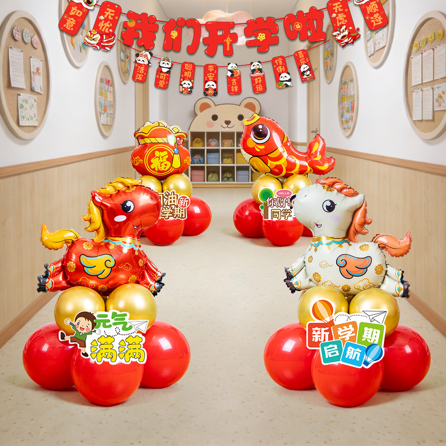 📚 新年马年开学典礼气球立柱装饰幼儿园教室门口仪式感氛围活动布置