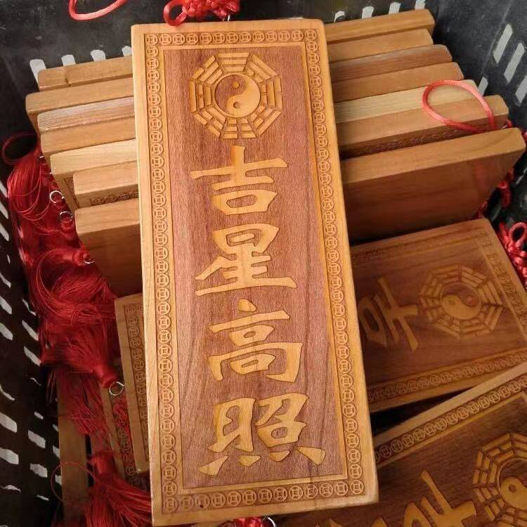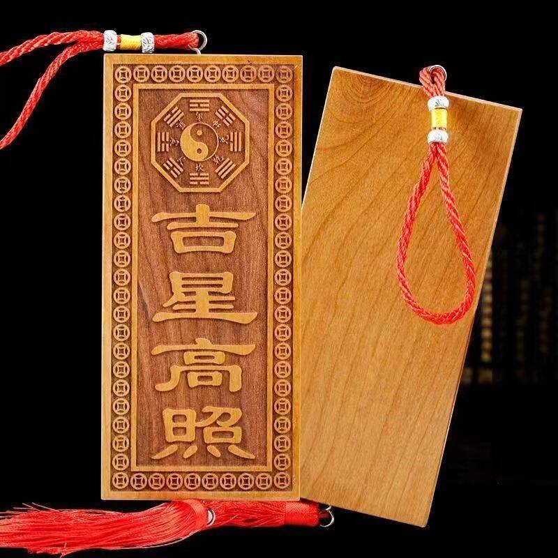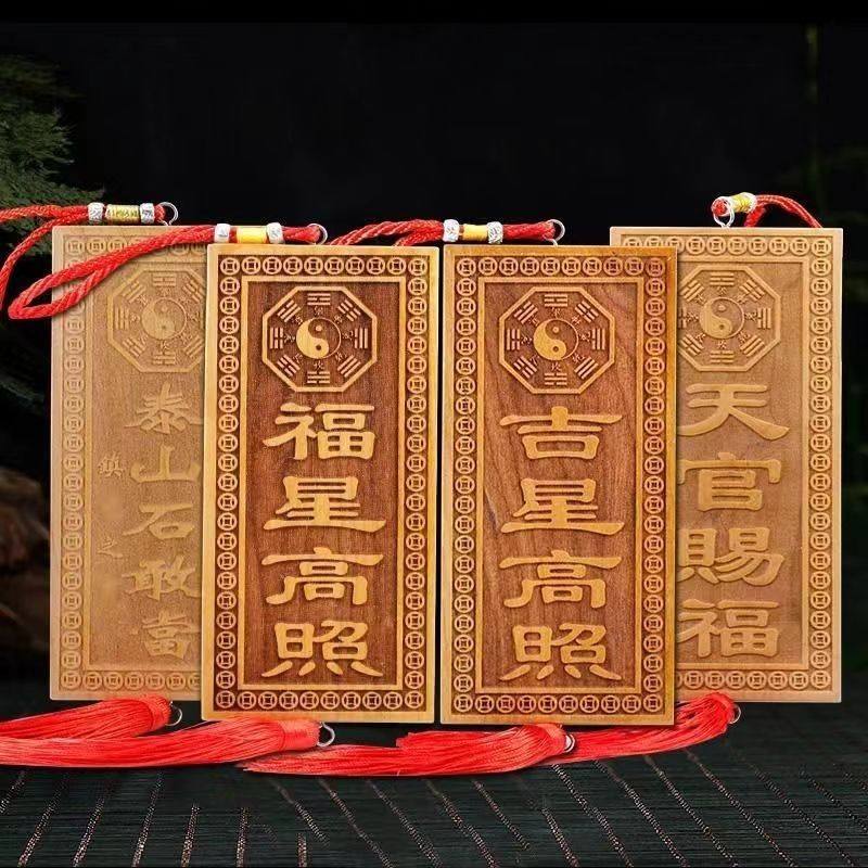 📚 玄门正宗纯正桃木雕刻泰山石敢当补角吉星高照牌天官赐星高照挂