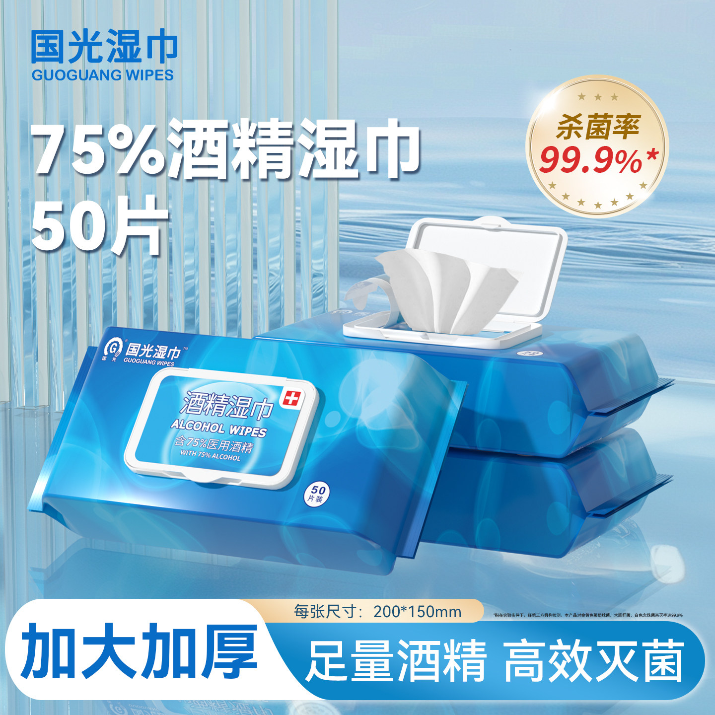 📚 国光75%酒精湿巾消毒杀菌一次性清洁湿纸巾外出餐具家用大包50片