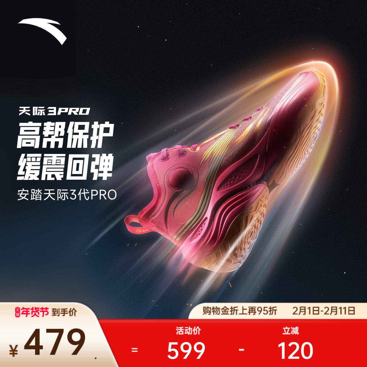 📚 安踏天际3PRO丨氮科技抗扭缓震回弹耐磨专业实战运动高帮篮球鞋男