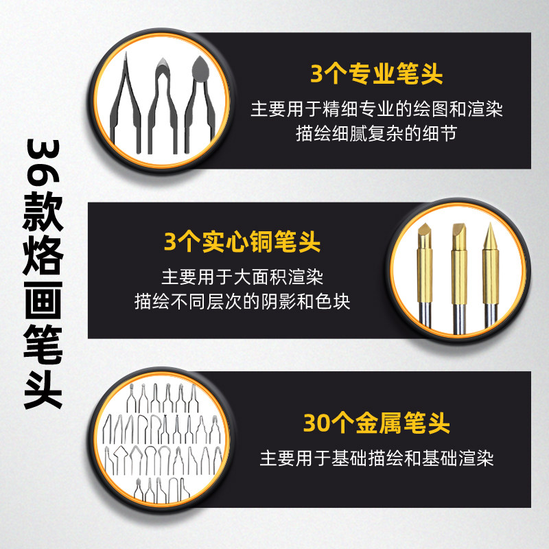 📚 蓬甲烙画机专业36种渲染描绘烙画笔头葫芦调温烙画工具电烙烫画笔