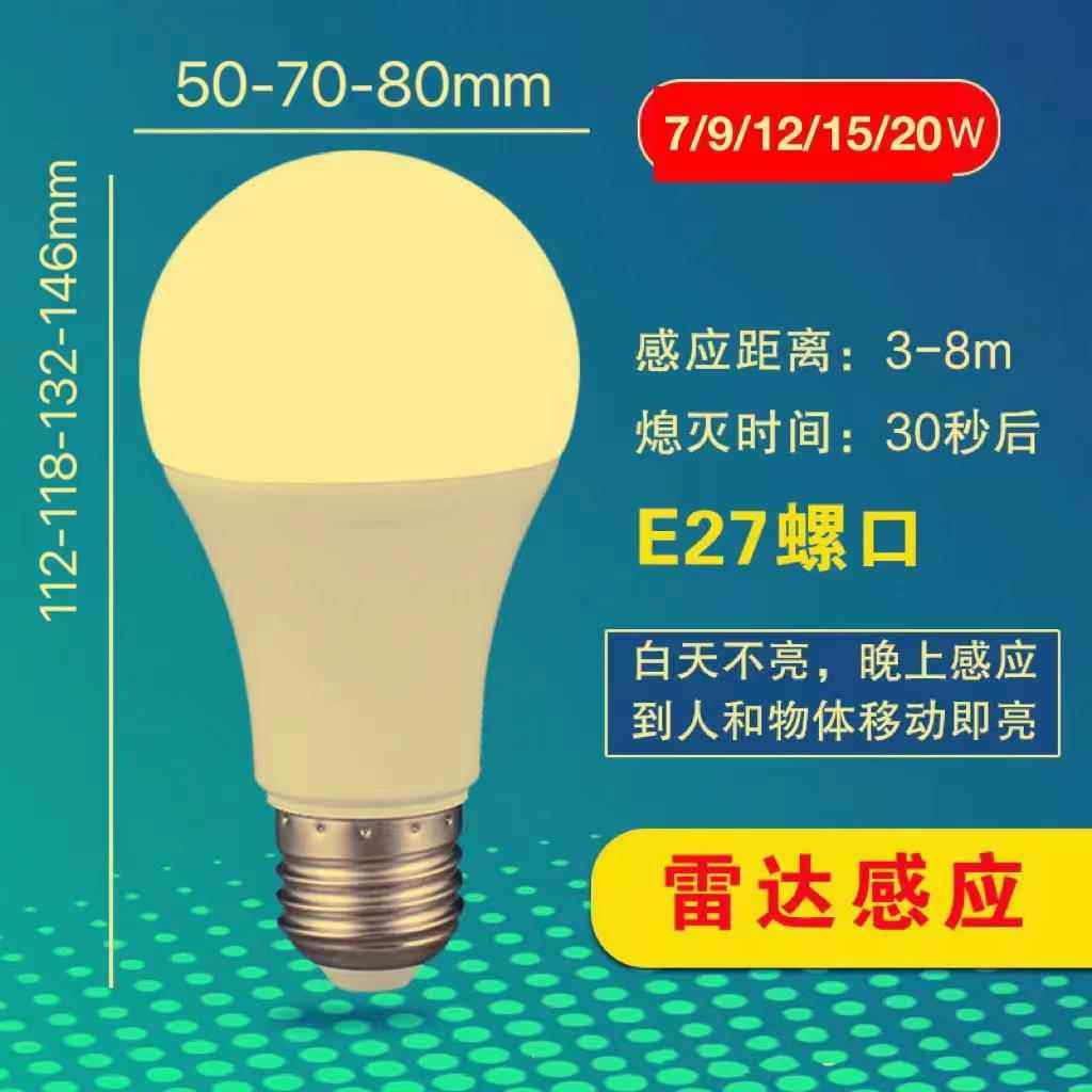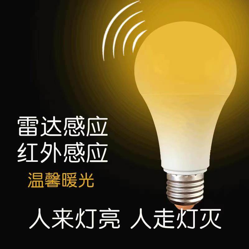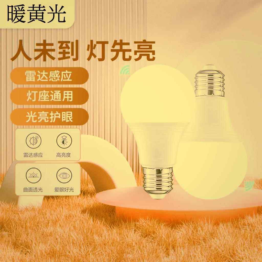 📚 雷达感应LED灯泡暖色暖光黄光e27螺口夜间走廊楼梯过道黄色节能灯