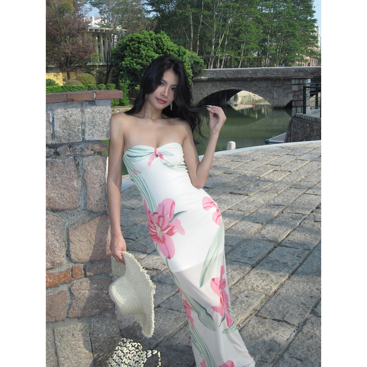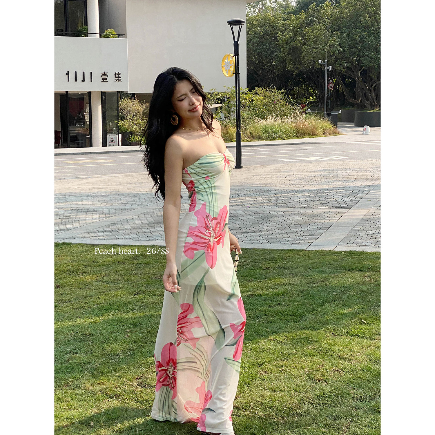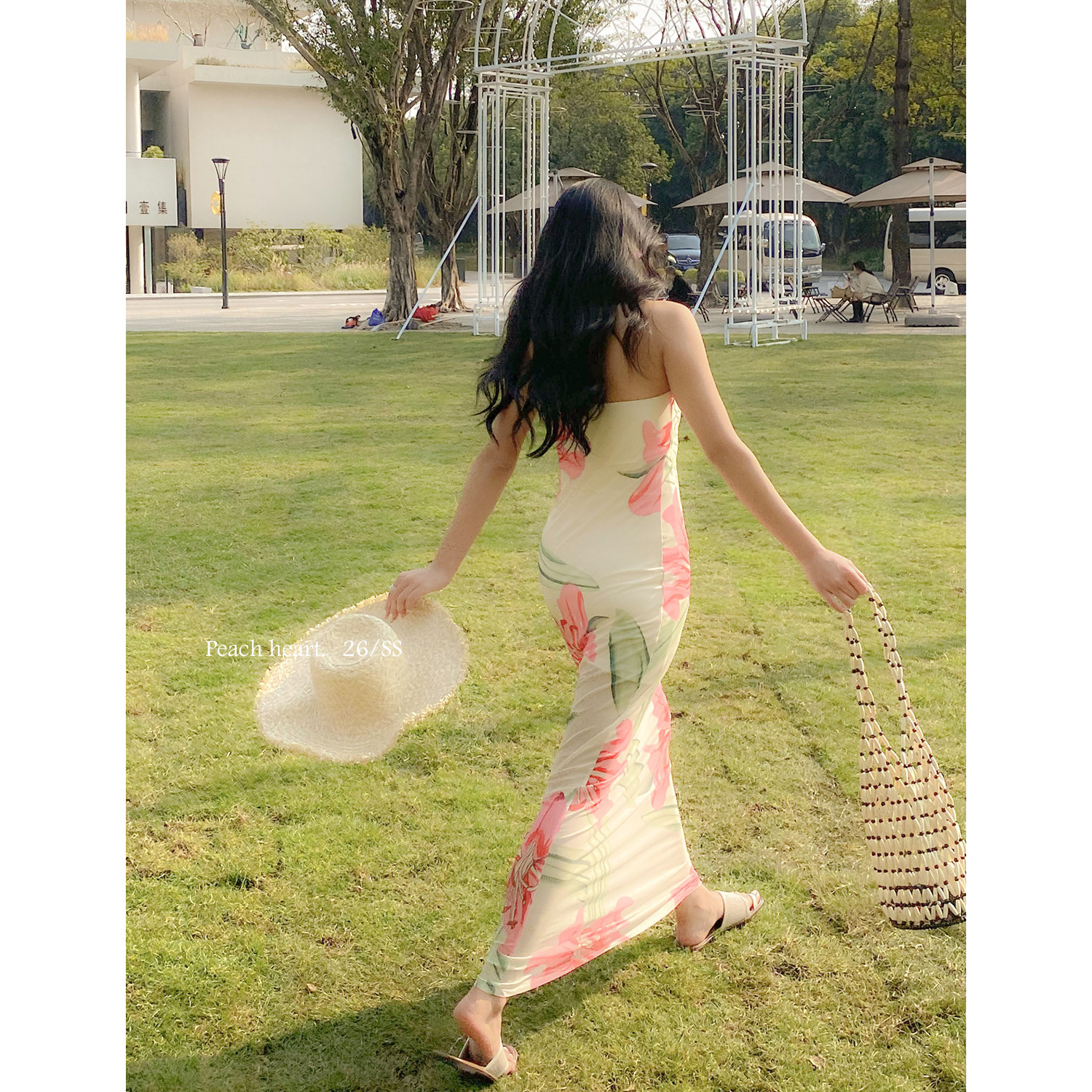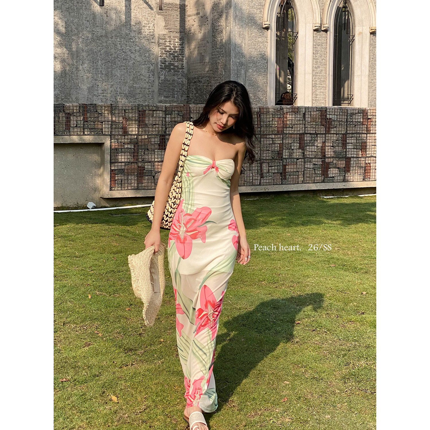 📚 【Peach heart】2/1新品 热带海岛度假印花连衣裙裹胸包臀裙长裙