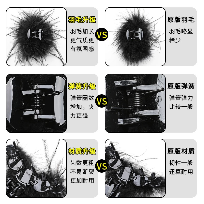 📚 羽毛抓夹女超仙高级感发夹后脑勺鸵鸟毛发卡鲨鱼夹ins风毛毛头饰