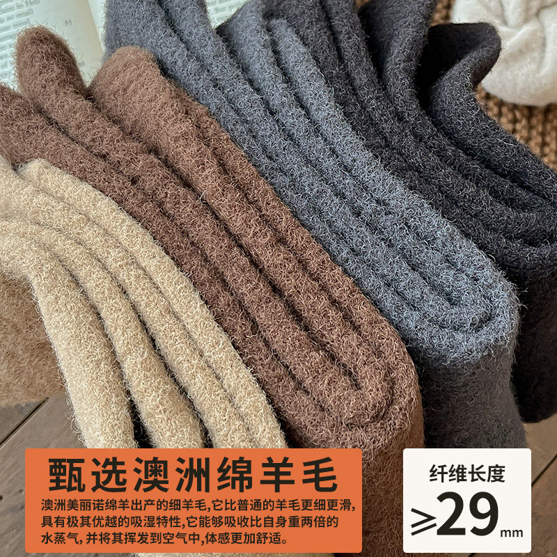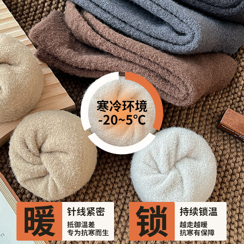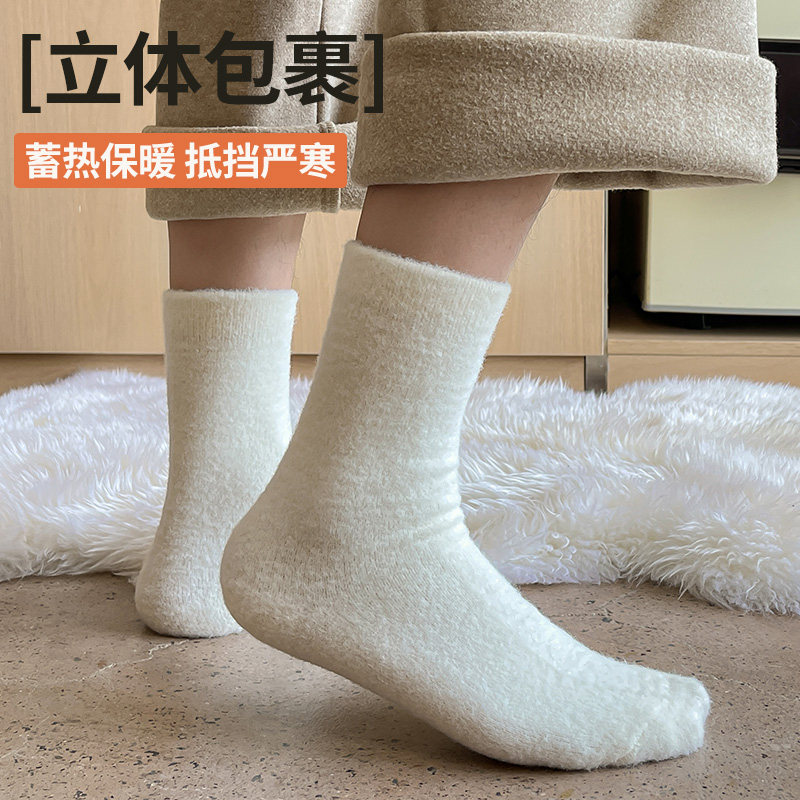 📚 白色羊绒袜子男士中筒袜秋冬款加绒加厚羊毛毛绒冬天保暖超厚长袜