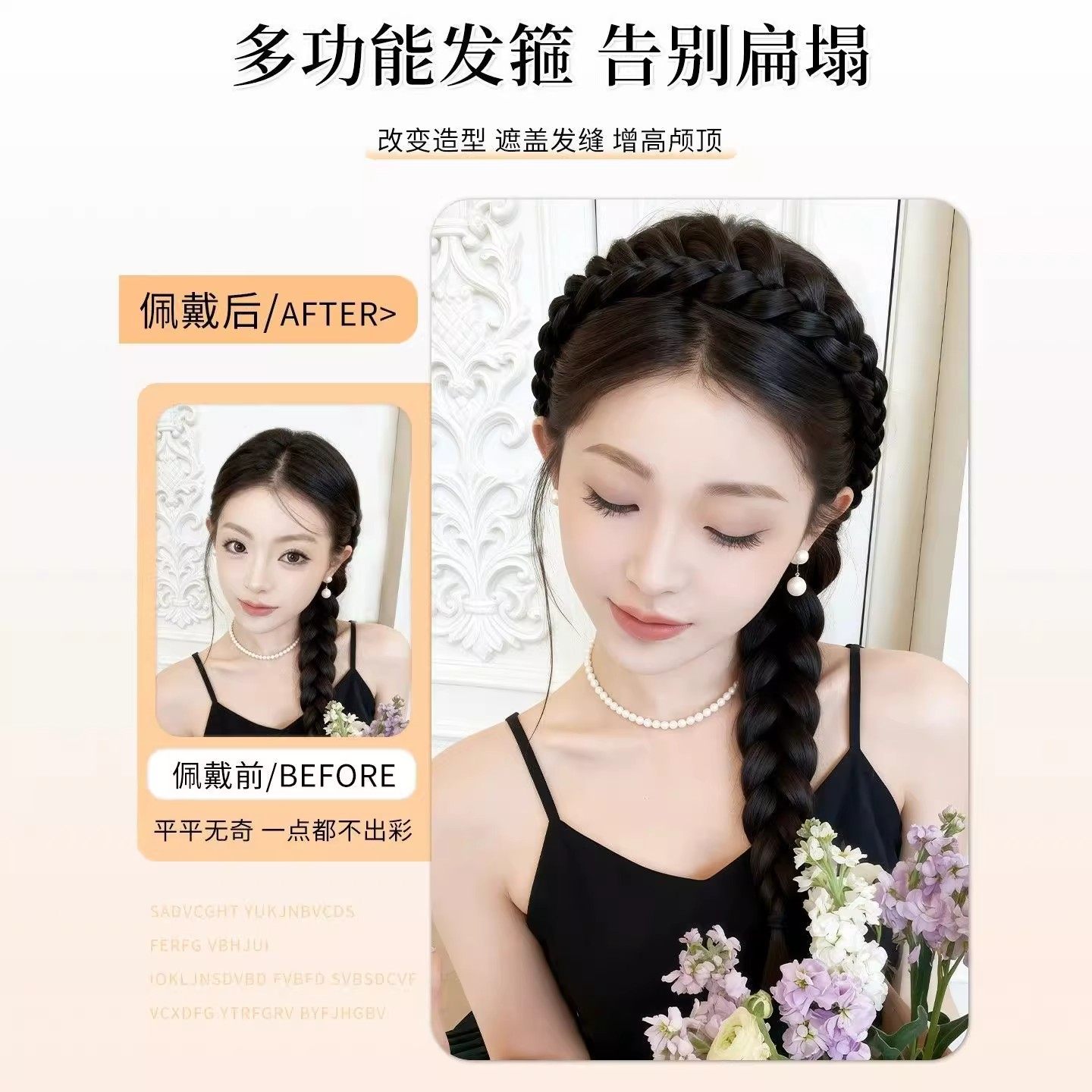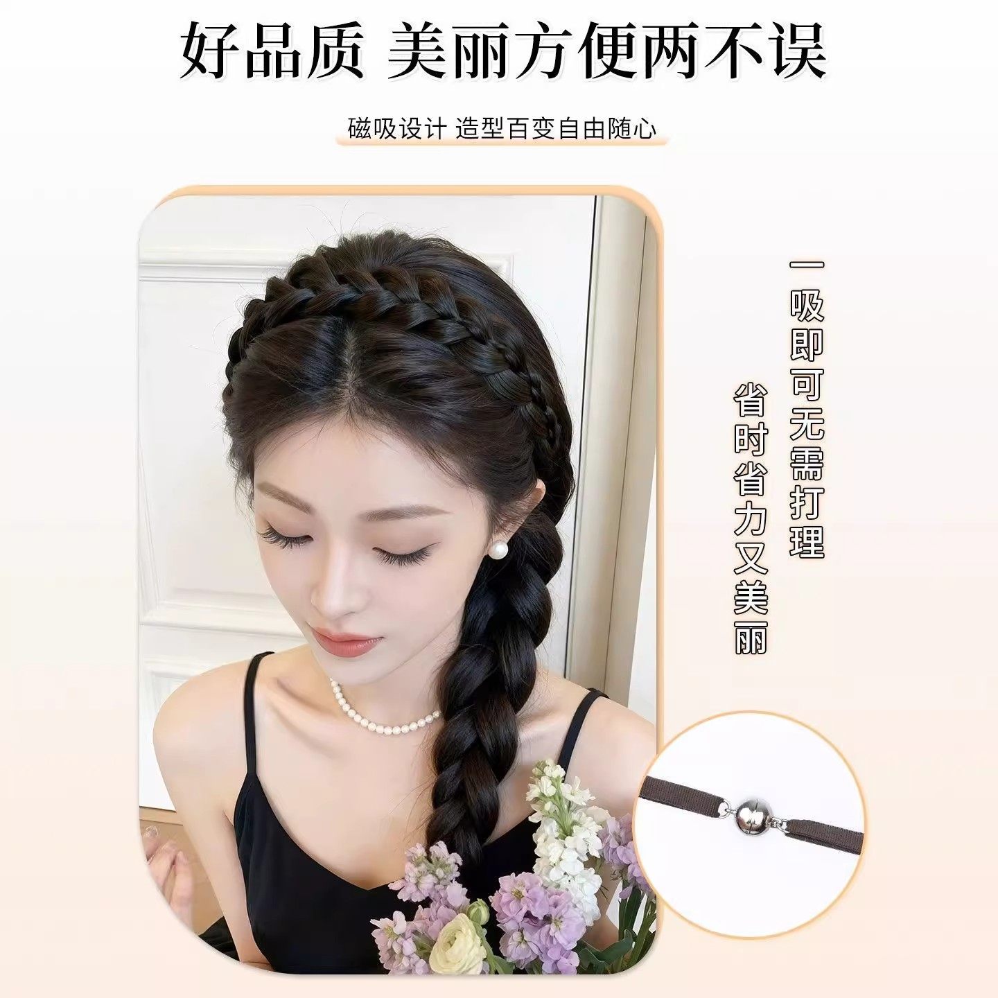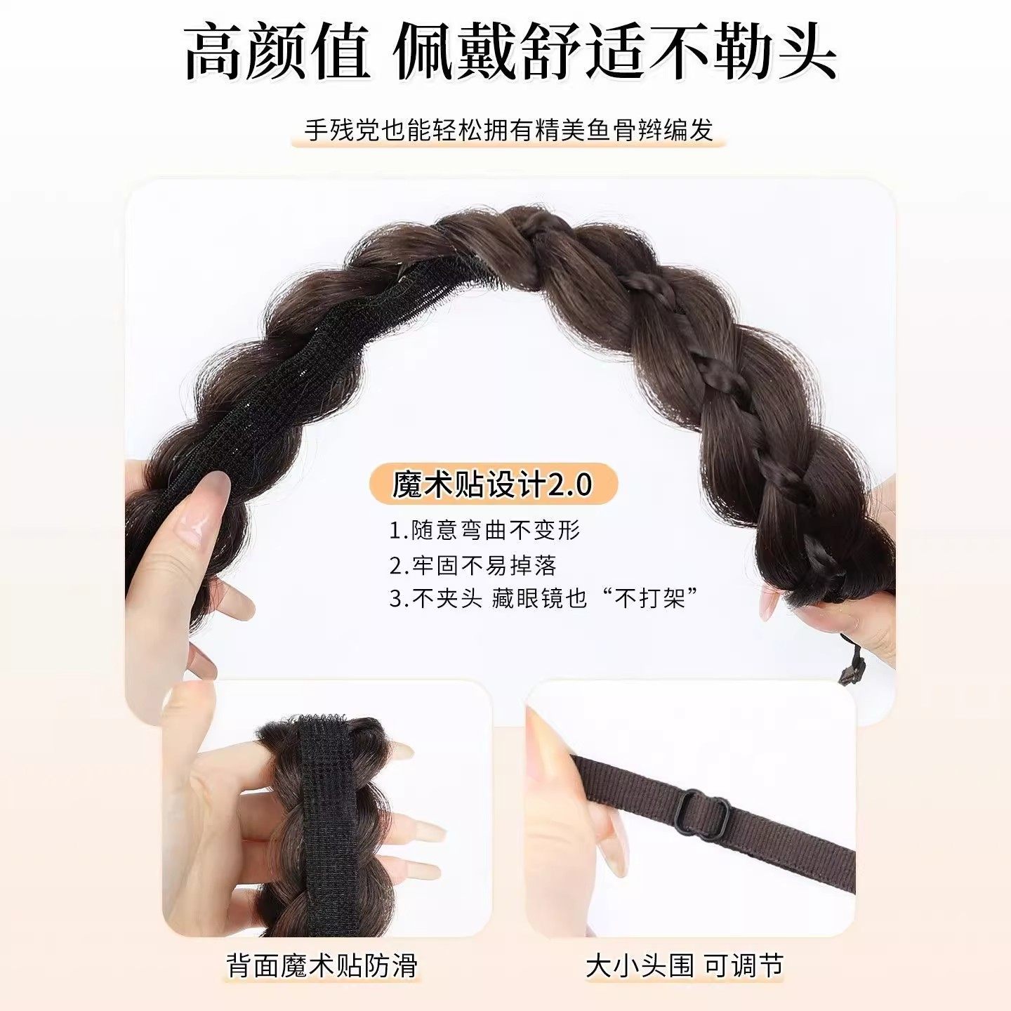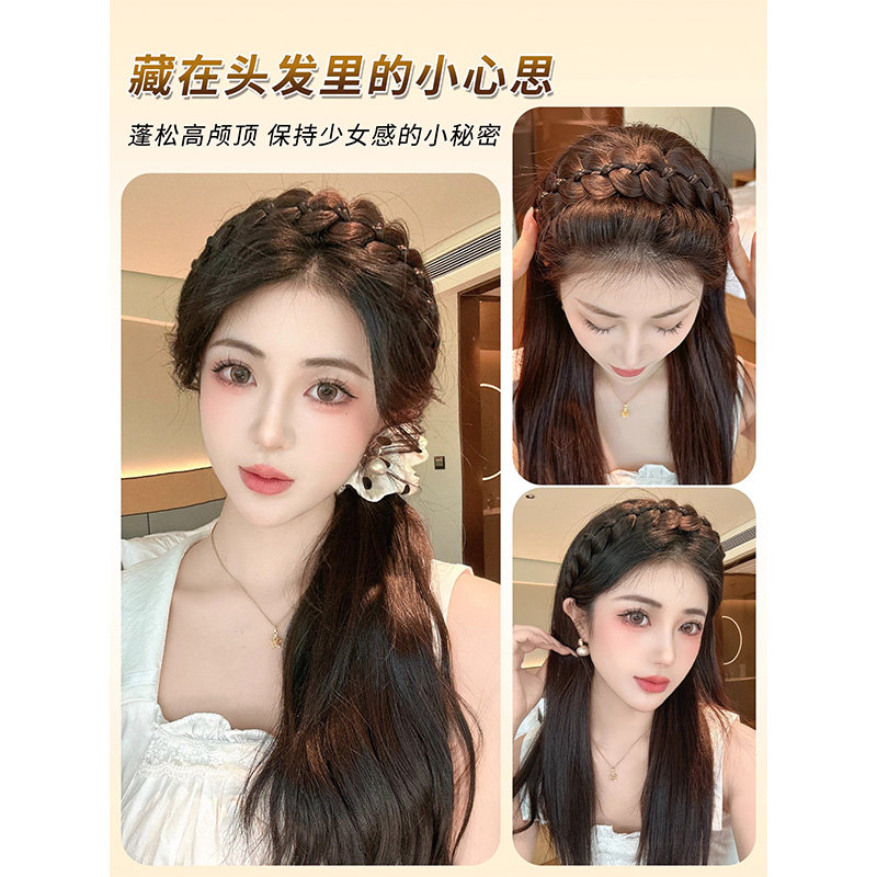 📚 磁吸式鱼骨辫发箍假发一体女麻花辫编发长辫子发饰发带高颅顶头饰