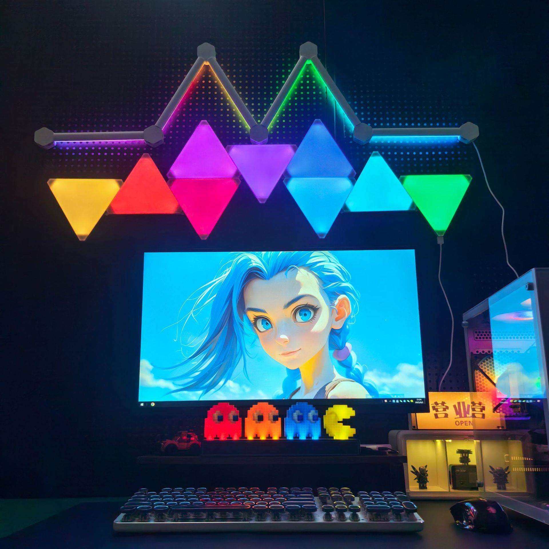 📚 洞洞板磁吸款超薄款智能奇光板量子灯三角形拼接幻彩电竞房氛围灯