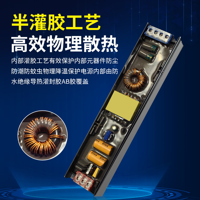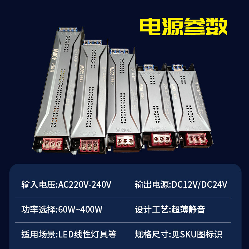 📚 led超薄灯箱电源220转12v24v100w300w细长条黑金刚线型灯带变压器