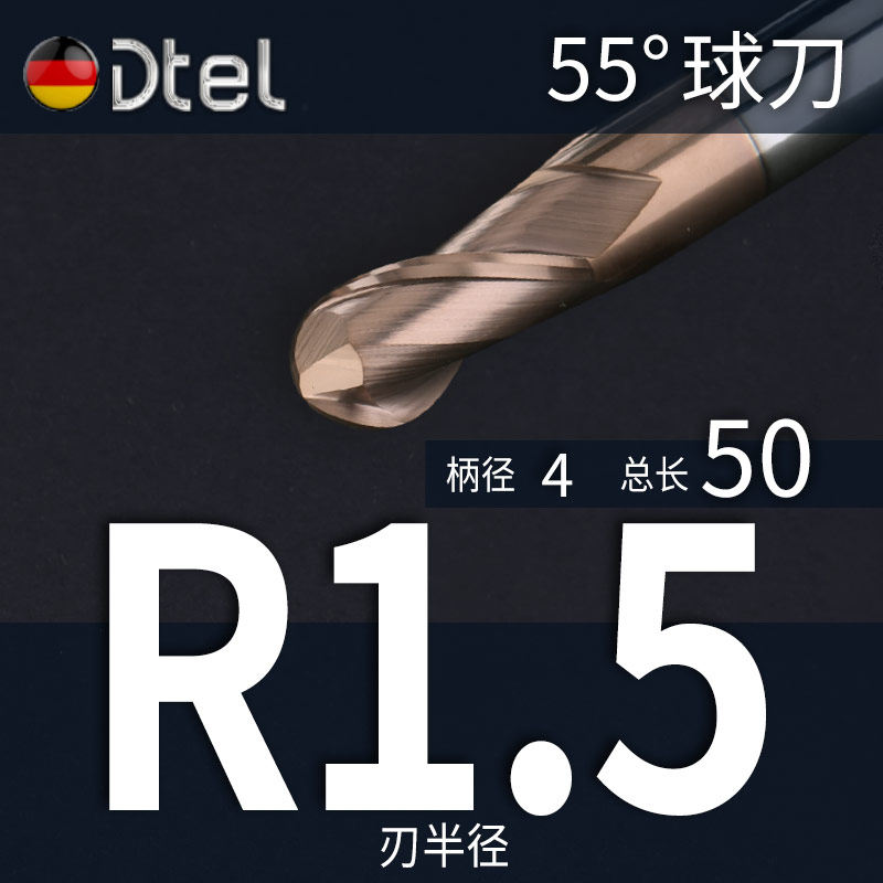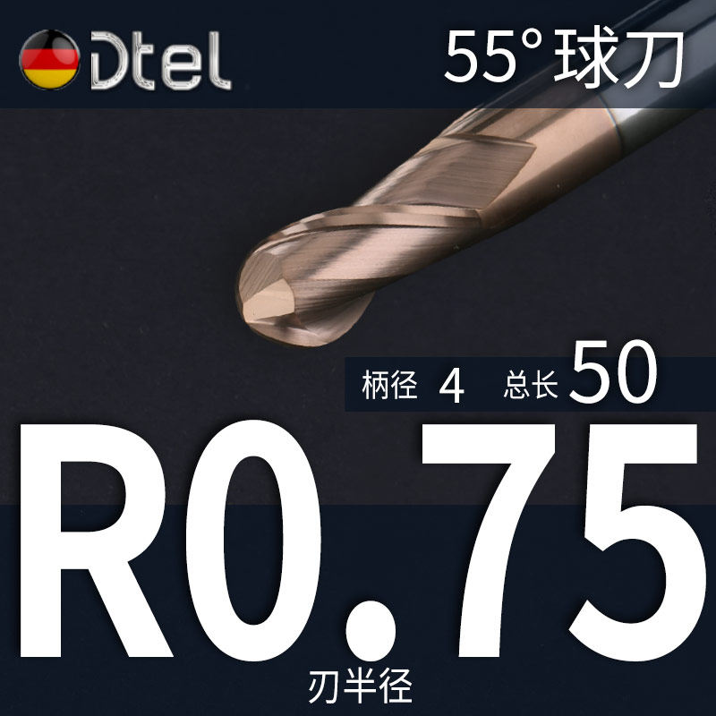 📚 德特钨钢球刀铣刀55度2刃r5硬质钢用涂层圆头球形合金球头立铣刀