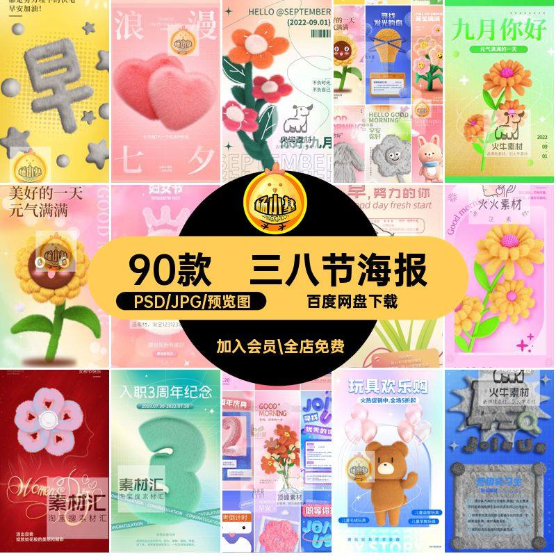 📚 酸性创意春游光花卉psd三八节美食招聘节日宣传海报PSD海报模版