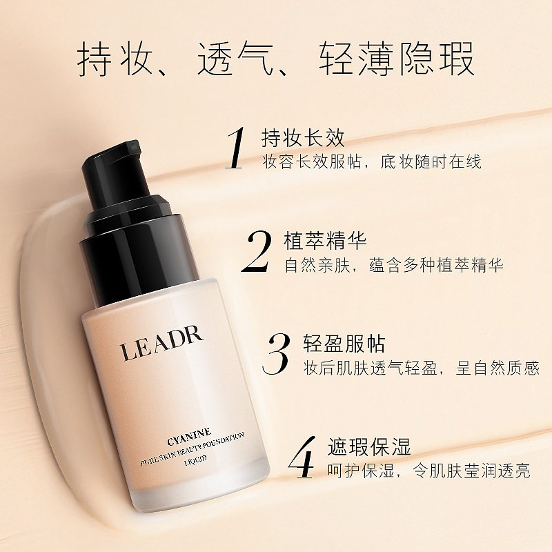 📚 LEADR菁纯养肤粉底液轻薄遮瑕持妆定妆粉底液控油雾面哑光粉底液