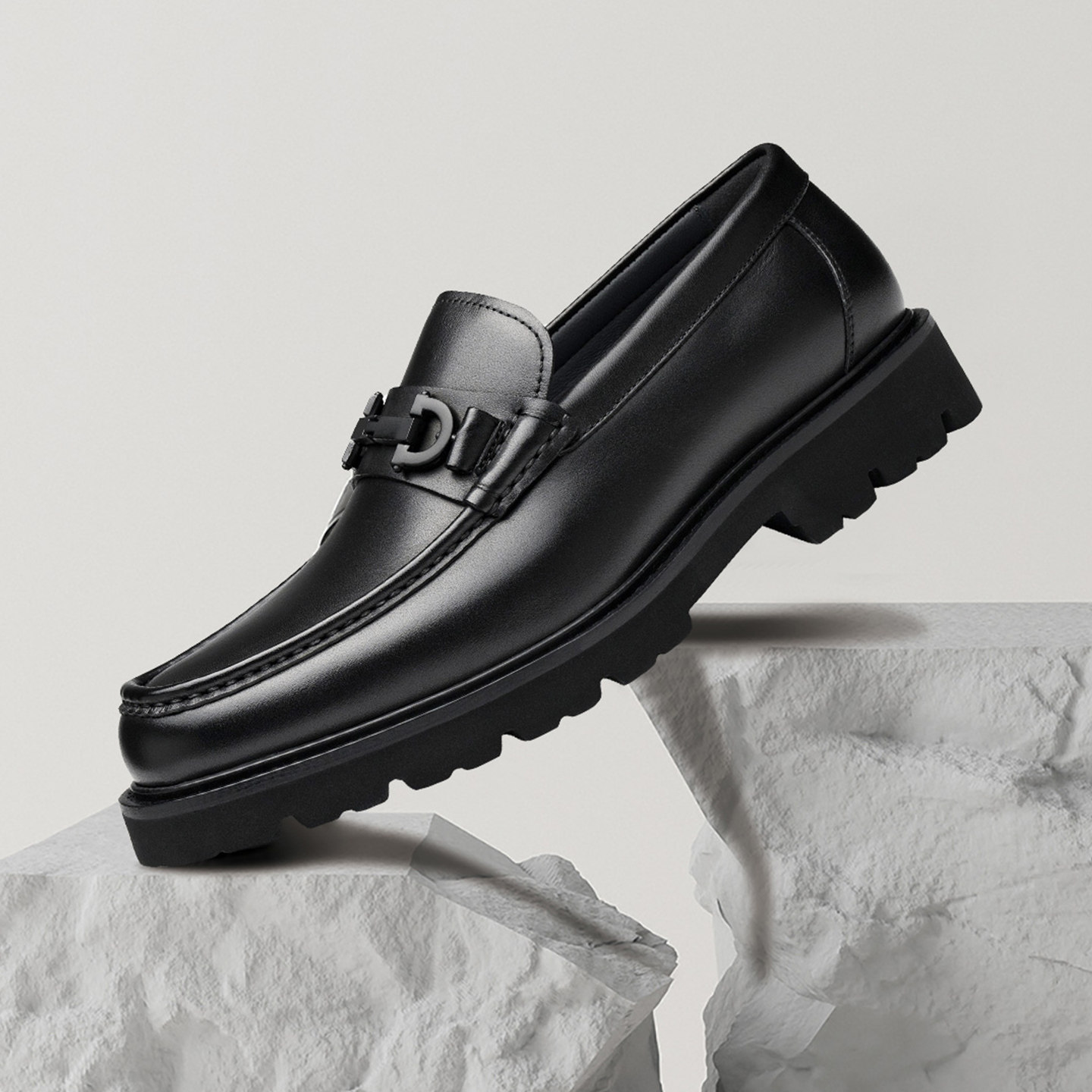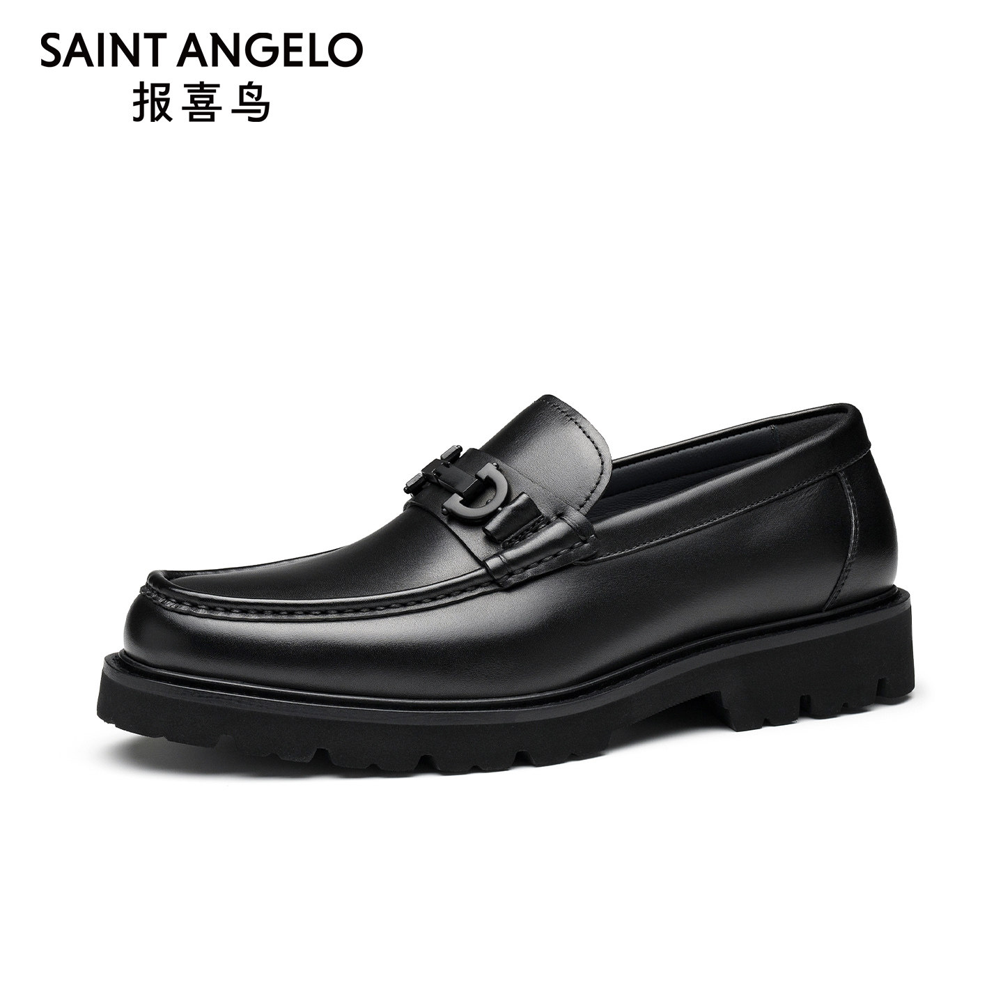 📚 报喜鸟春秋新款男士商务休闲皮鞋头层牛皮厚底浅口一脚蹬乐福鞋