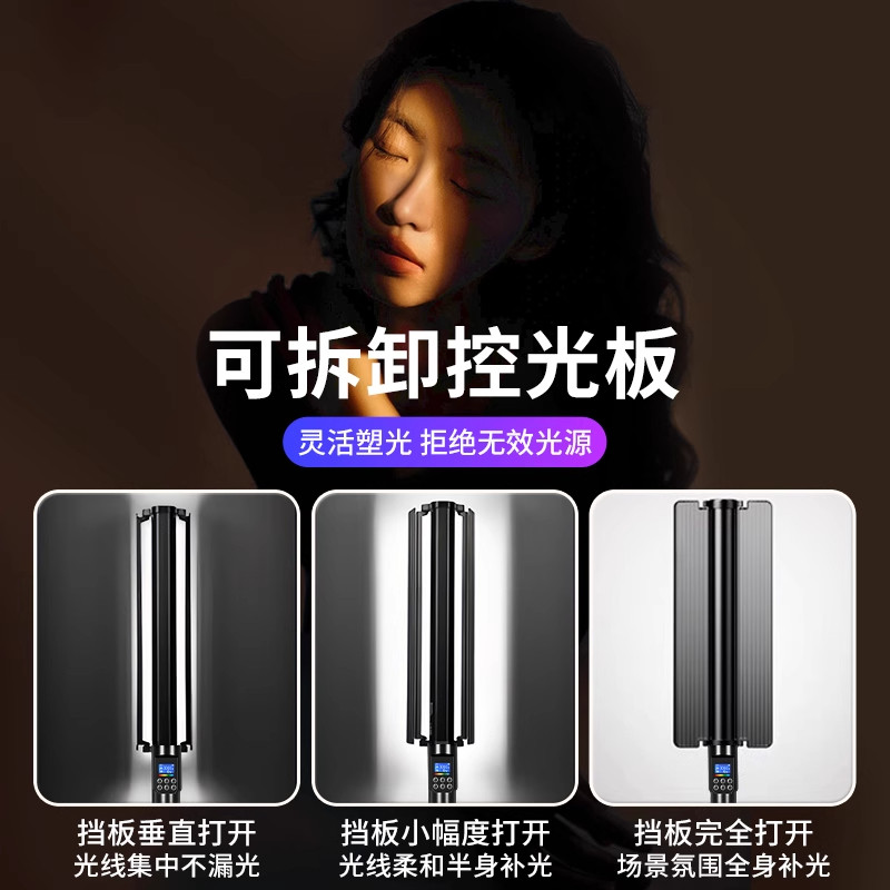 📚 充电式手持补光灯直播间棒灯RGB拍视频人像夜景摄像氛围便携式专业自拍补光棒户外补光美颜夜拍灯带挡板拍摄