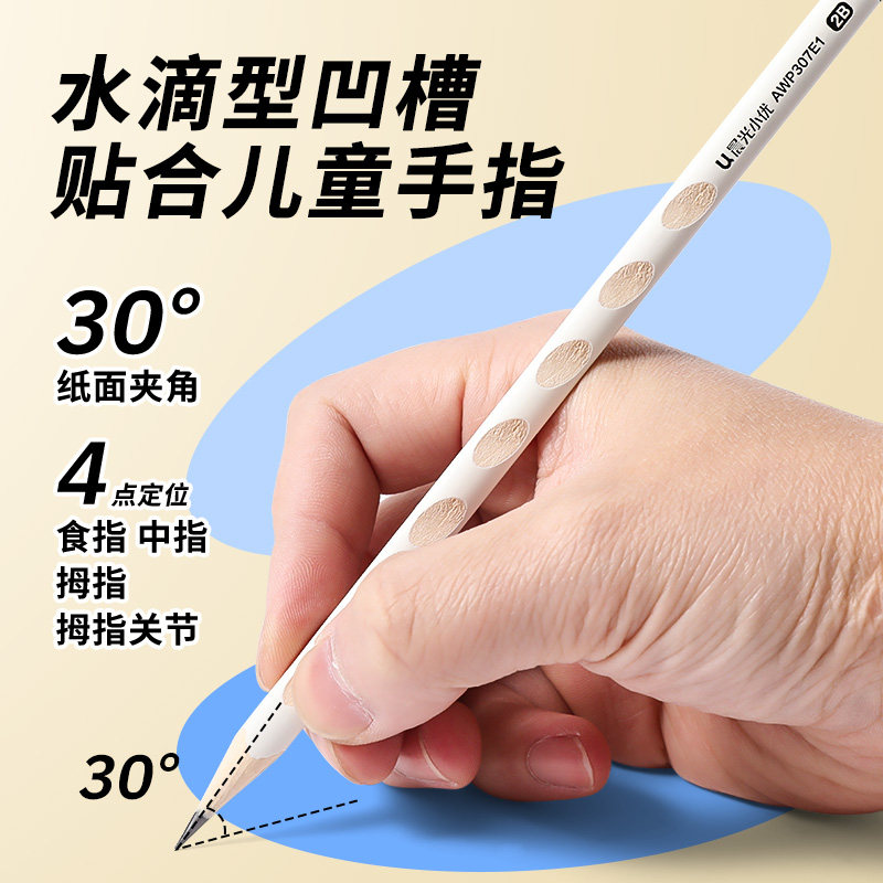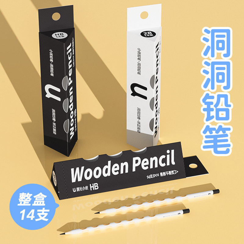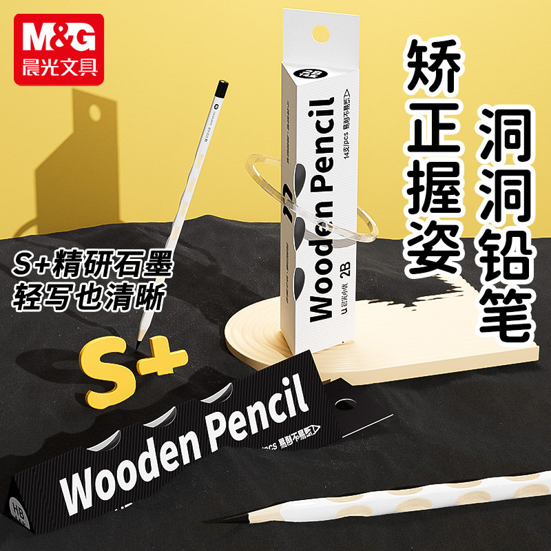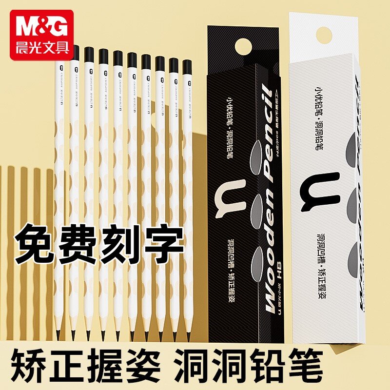 📚 晨光刻字小白杆洞洞铅笔小学生用无毒一年级初学者练字笔HB洞洞笔矫正握姿幼儿园素描绘画2B考试涂卡笔铅笔