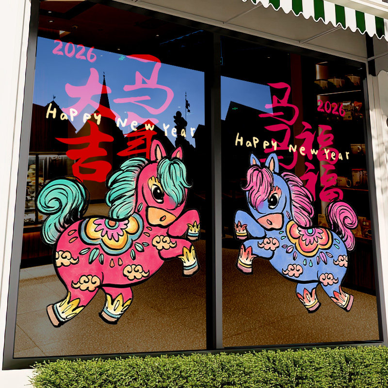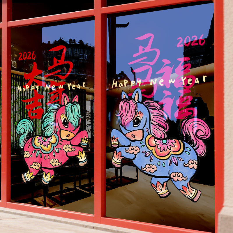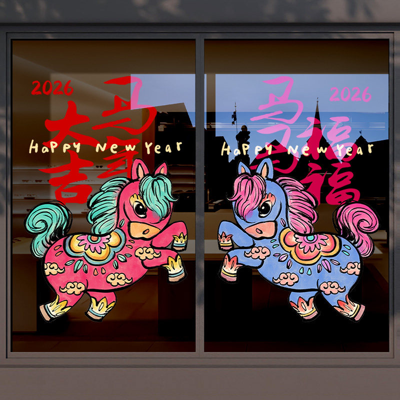 📚 2026新年装饰室内贴纸静电马马福福春节窗花玻璃礼物布置马年门贴