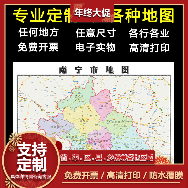 📚 南宁市地图1.1m高清新款贴图广西省全图行政信息交通区域划分现货