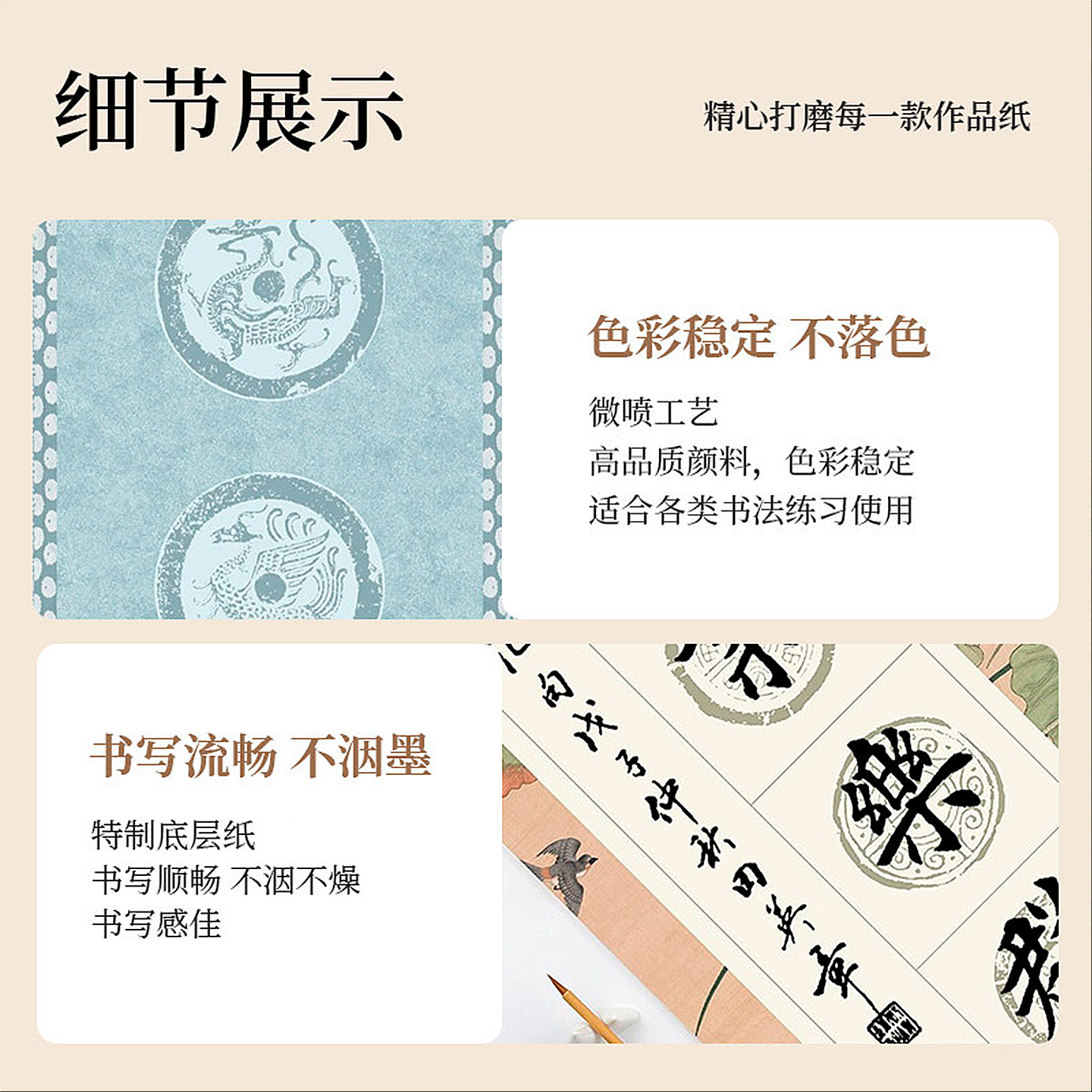 📚 景阳阁四言吉语作品纸四尺四开微喷书法作品纸半生熟四字书法作品纸软笔瓦当毛笔作品纸临摹字帖四字吉语落款