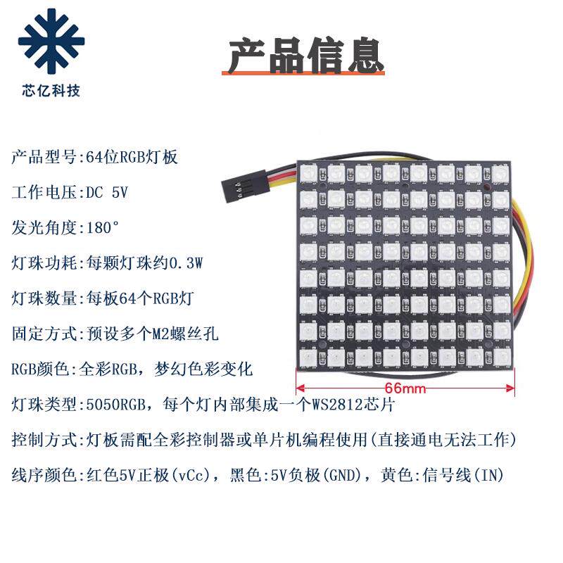 📚 WS2812 RGB LED全彩幻彩点阵屏 圆形方形灯板适用Arduino编程驱动