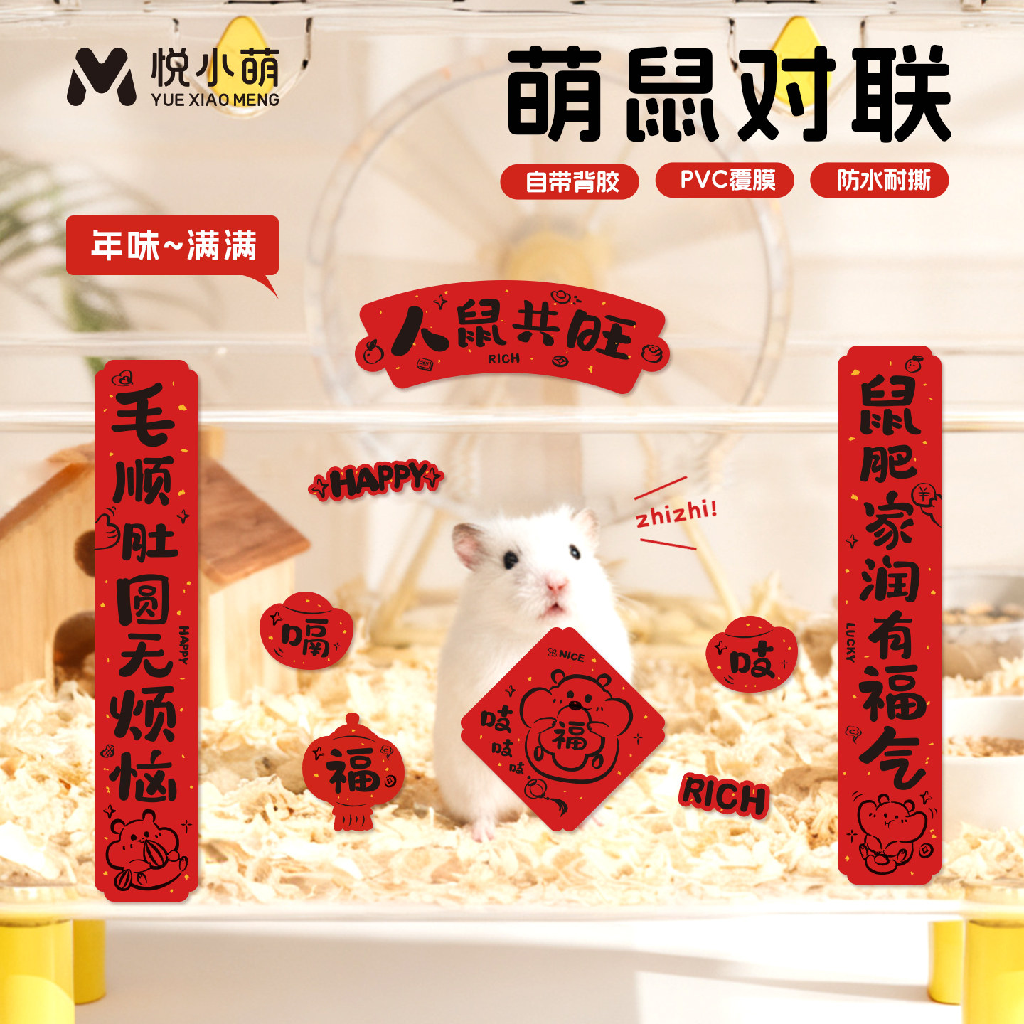 📚 悦小萌2026马年新款仓鼠对联金丝熊花枝鼠春联宠物笼创意福字贴纸