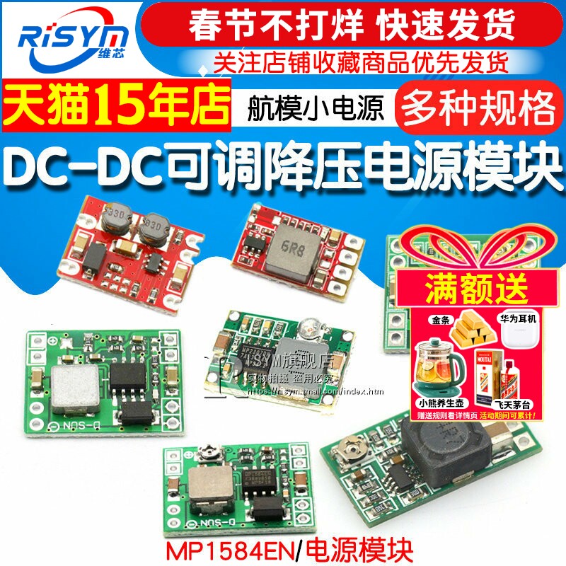 📚 DC-DC 3A 5A可调降压电源模块板稳压航模MP1584EN 24V-12V 9V转5V