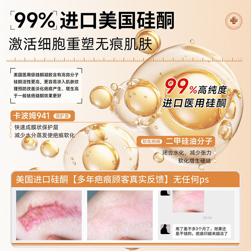 📚 医用硅酮凝胶改善病理疤痕修复敷料手术烫伤疤痕增生凸起