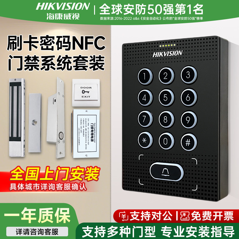 📚 【国货大牌】海康威视小区楼宇刷卡密码门禁系统一体机玻璃门套装