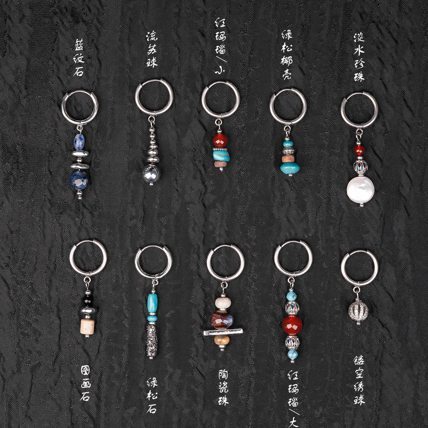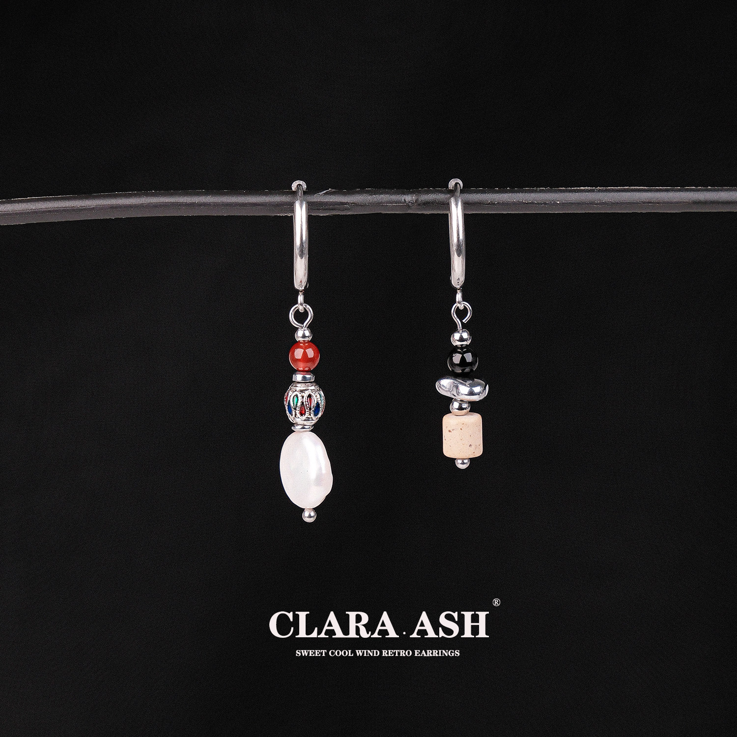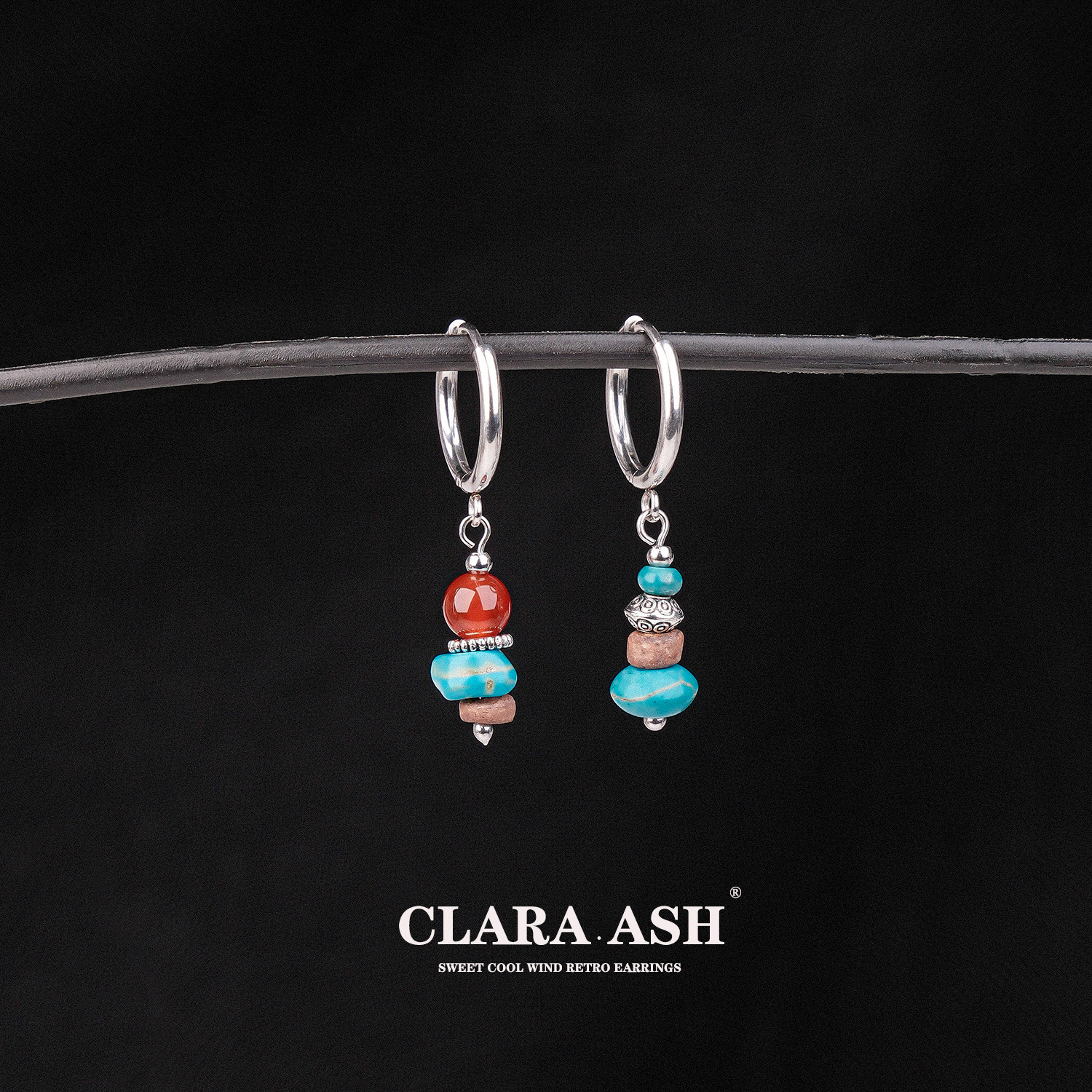 📚 ClaraAsh 原创蓝绿松石串珠耳环女小众不对称藏式民族风男耳饰坠