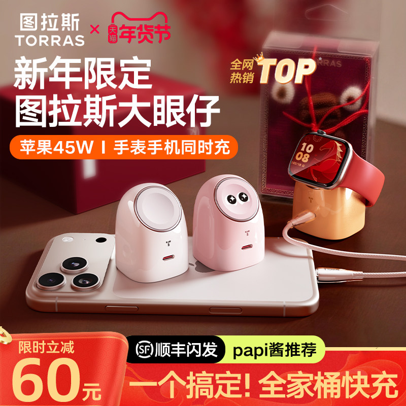 08¥ MF278 hn02UlhCSIi¥ https://m.tb.cn/h.7EIeGOo 图拉斯大眼仔适用苹果手表手机二合一充电器applewatch无线iwatch磁吸S11/Ultra充电座iPhone17ProMax45W快充 --------------------- 【原售价】636元 【现售价】318元。