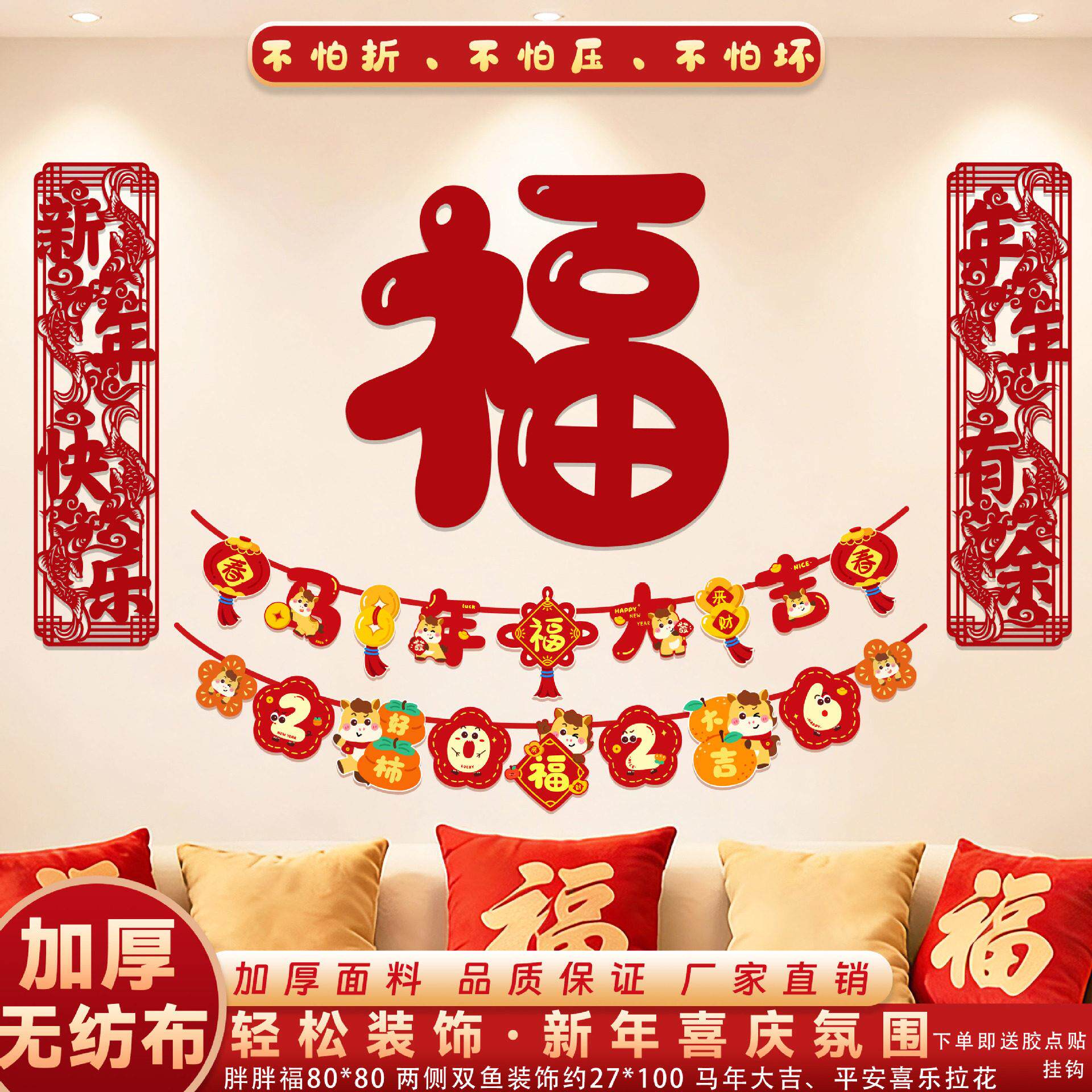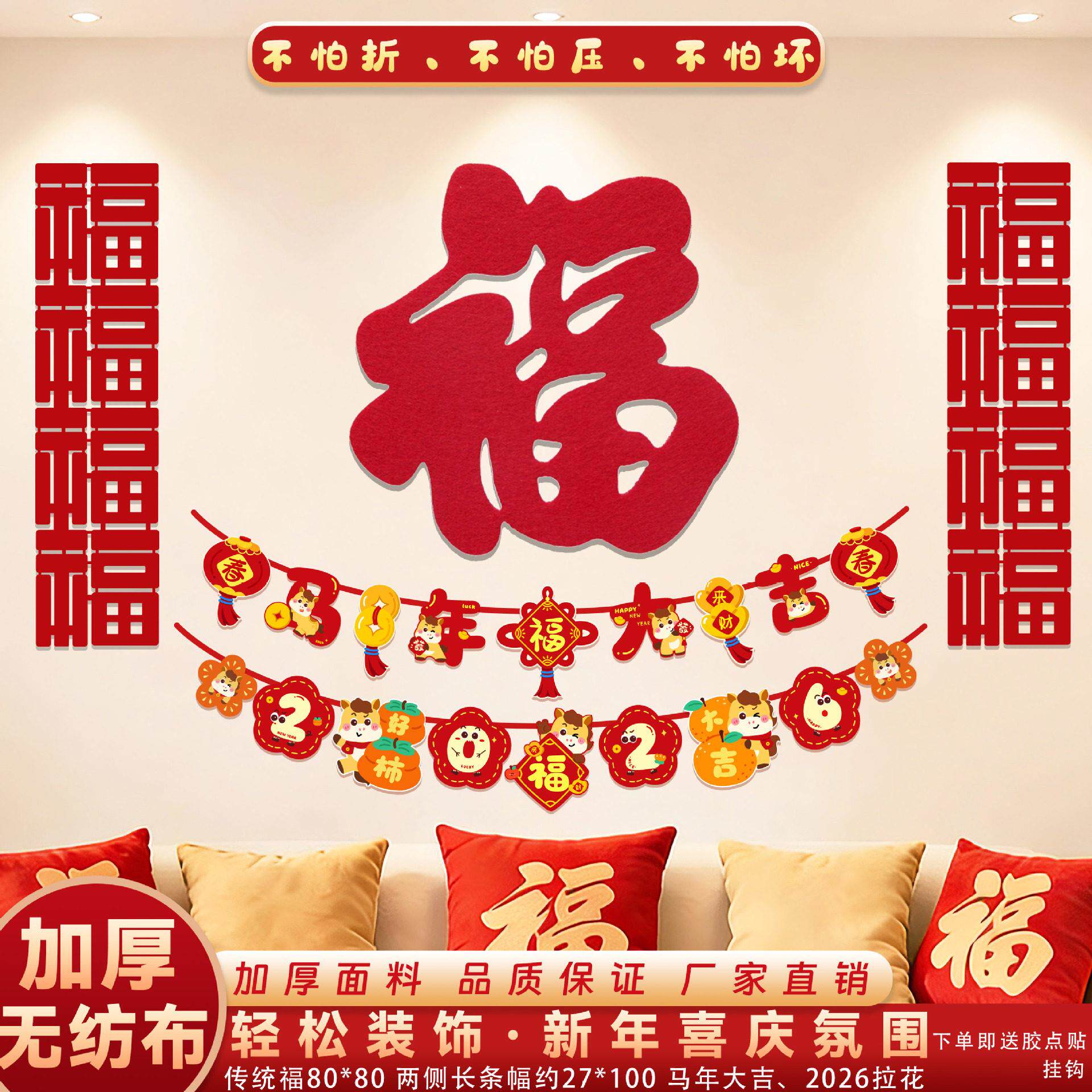📚 新年背景墙装饰2026客厅贺年挂饰福字过年氛围布置家里沙发墙装扮