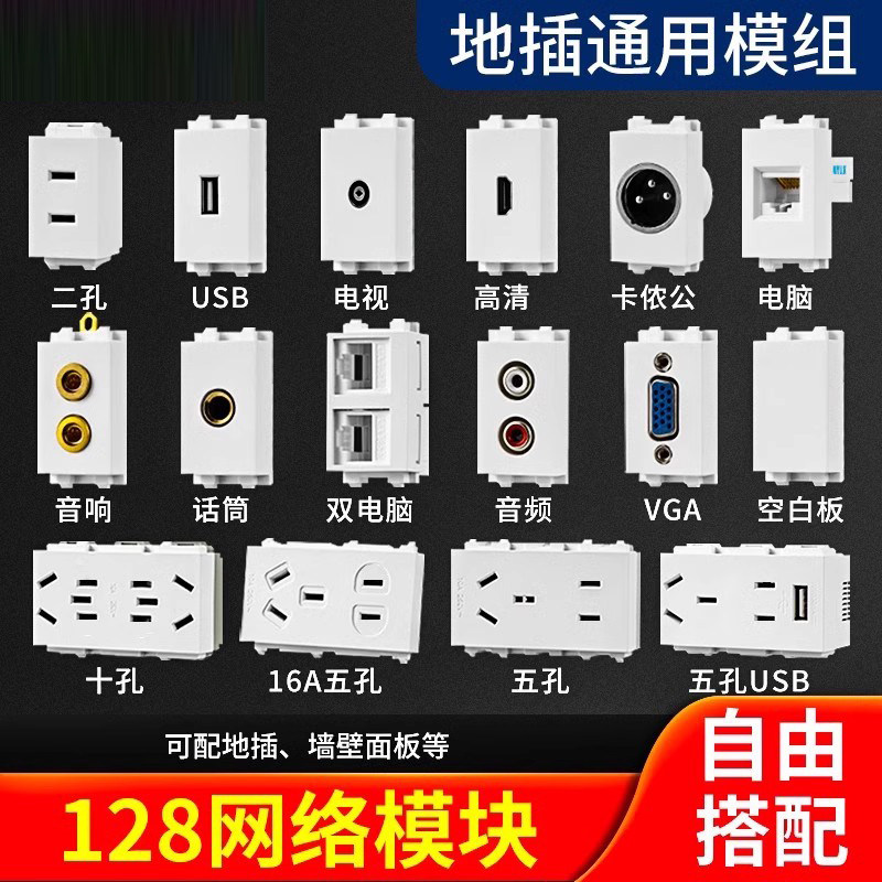 📚 自由组合地插模块128型功能键五孔16A三孔电话电脑功能键网络面板