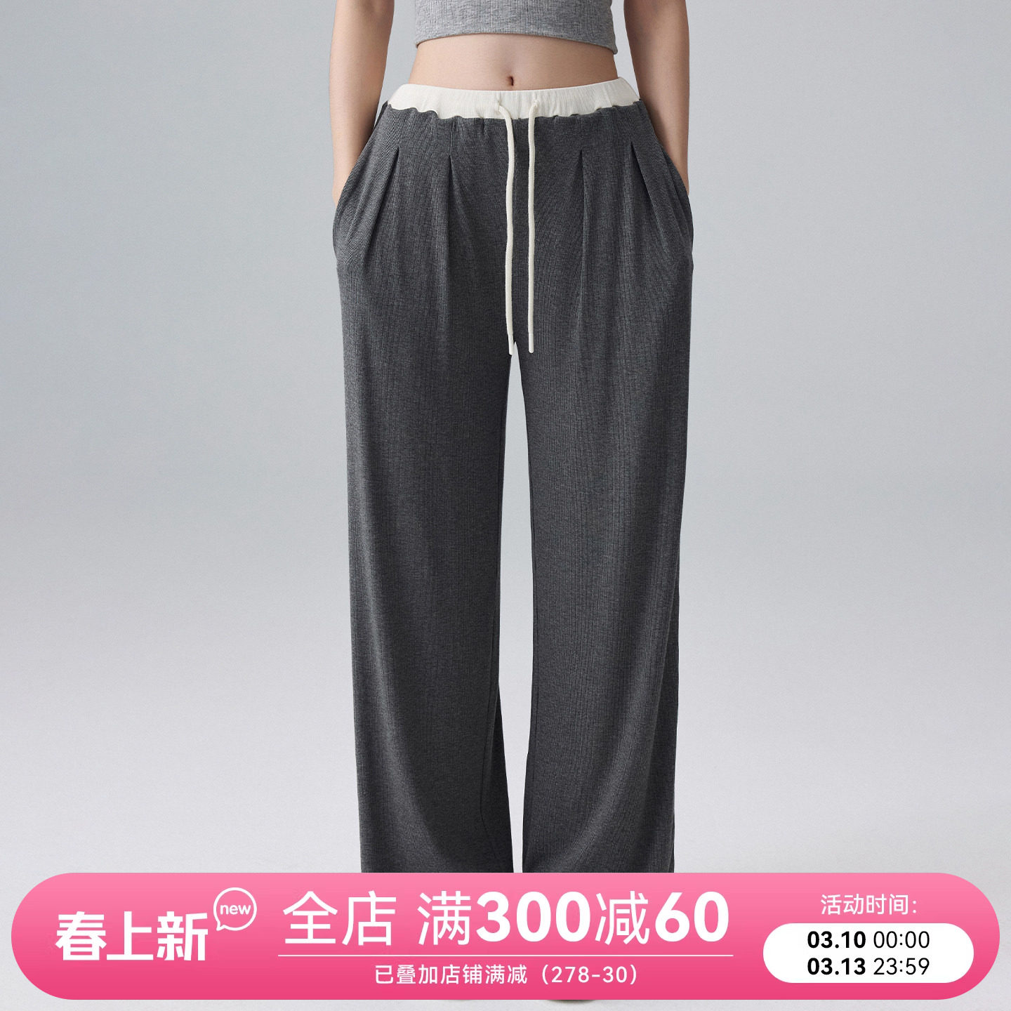 📚 Mitaogirl宽松直筒瑜伽裤女撞色出色运动裤户外跑步训练健身裤春