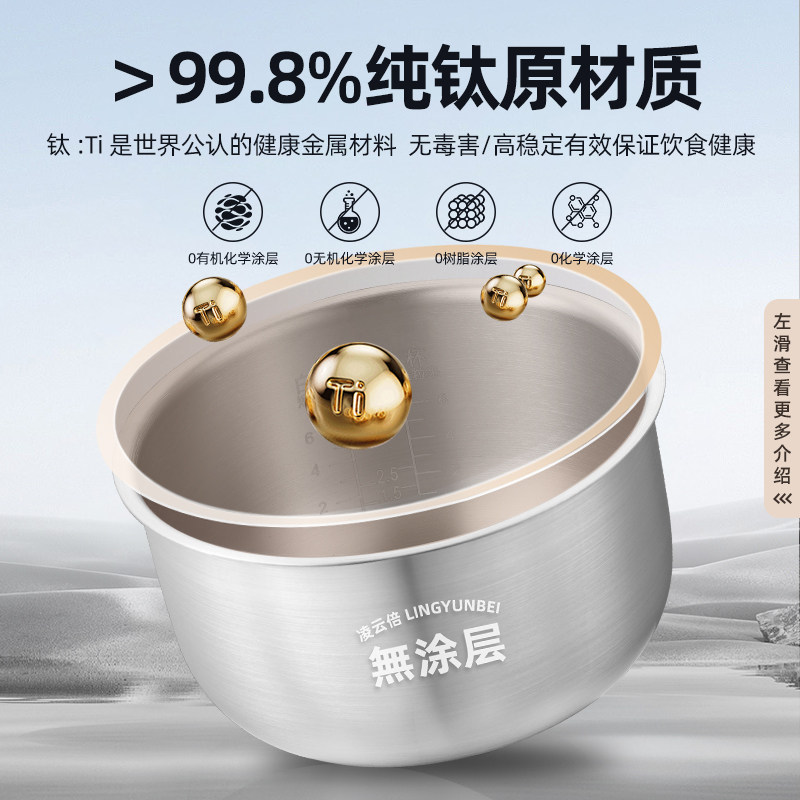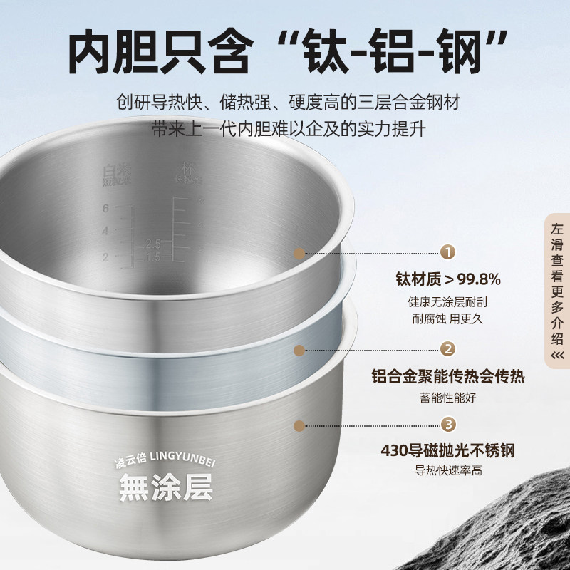📚 凌云倍纯钛0涂层内胆适用美的电饭煲3L升MB-WFS3018Q/MB-FS3073锅