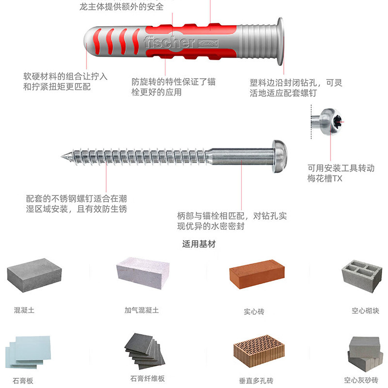 📚 慧鱼fischer膨胀螺丝DuoSeal带304不锈钢钉浴室专用密封原装进口