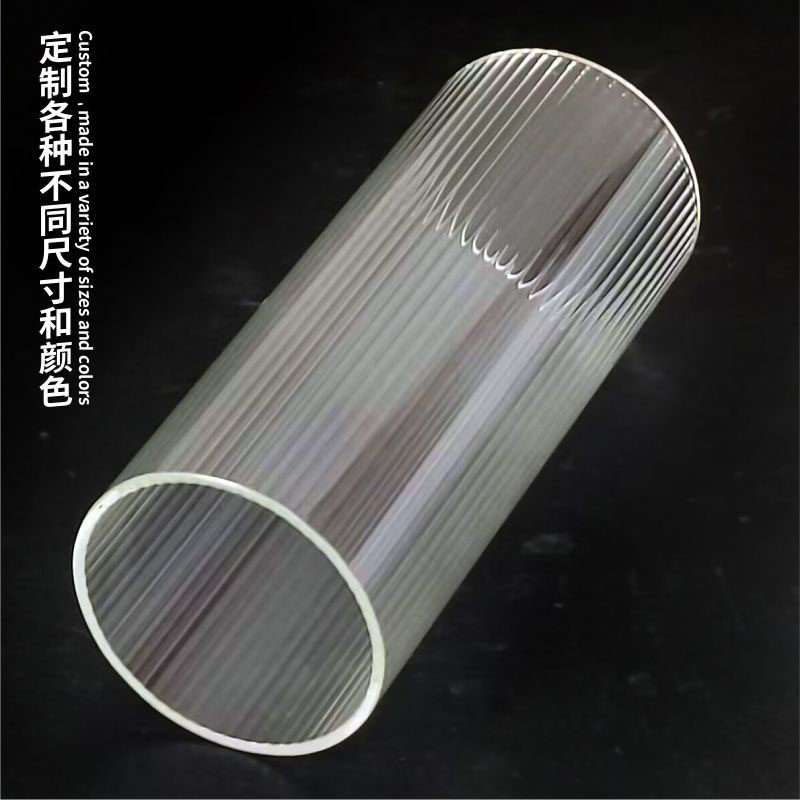 📚 定做玻璃圆柱形灯具配件直管耐高温双头通口条纹透明直筒吊灯外壳