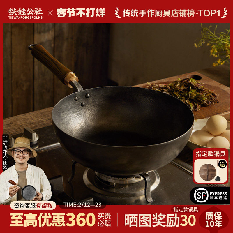 📚 铁娃公社小炒锅手工锻打铁锅迷你一人食无涂层平底煎炒锅家用炒菜