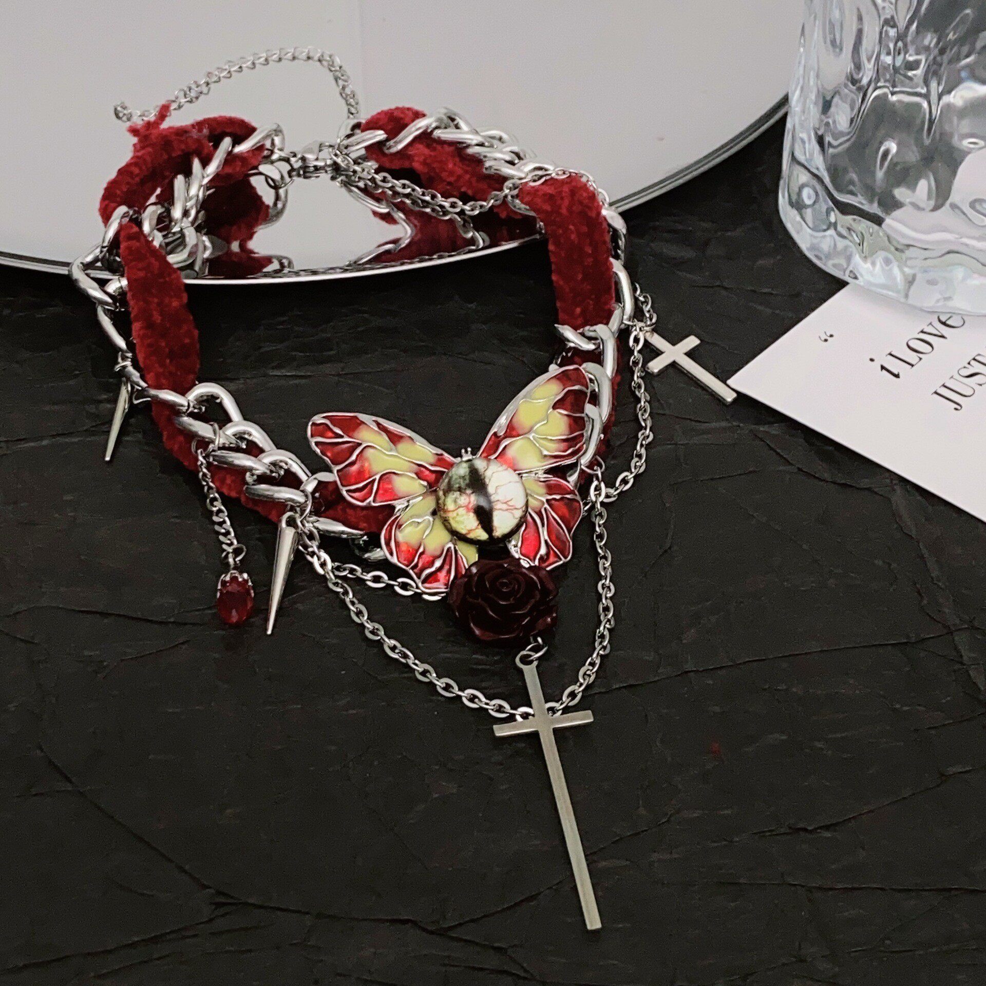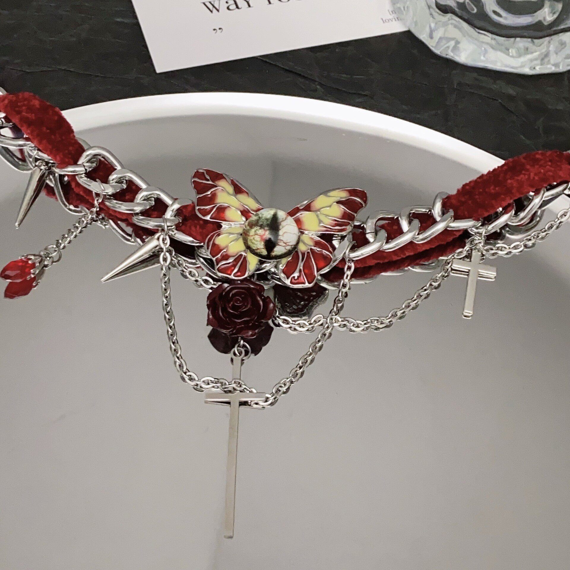 📚 哥特风红色丝绒蝴蝶项链女chocker颈链高级感轻奢小众设计锁骨链