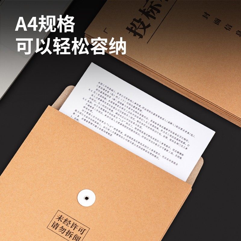 📚 得力A4牛皮纸投标袋档案袋方案袋纸质投标文件封面附赠密封条资料袋加大容量文件袋文件夹招标用办公用袋子