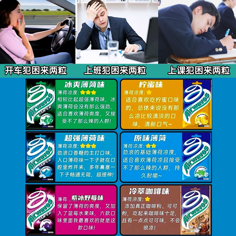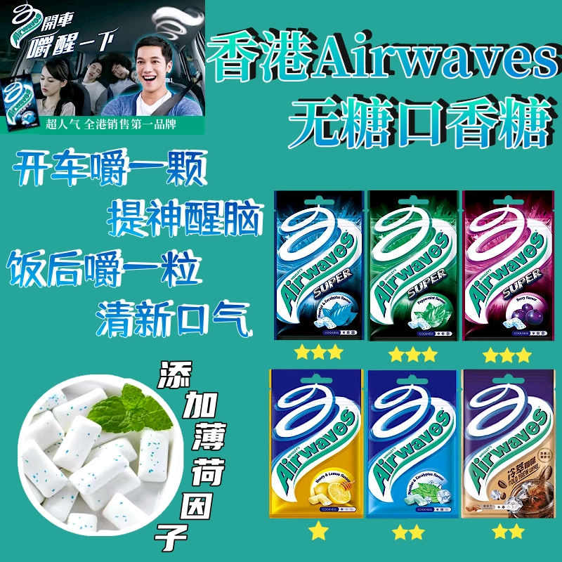 📚 进口airwaves爽浪劲浪口香糖无糖超强薄荷开车提神醒脑香口胶袋装