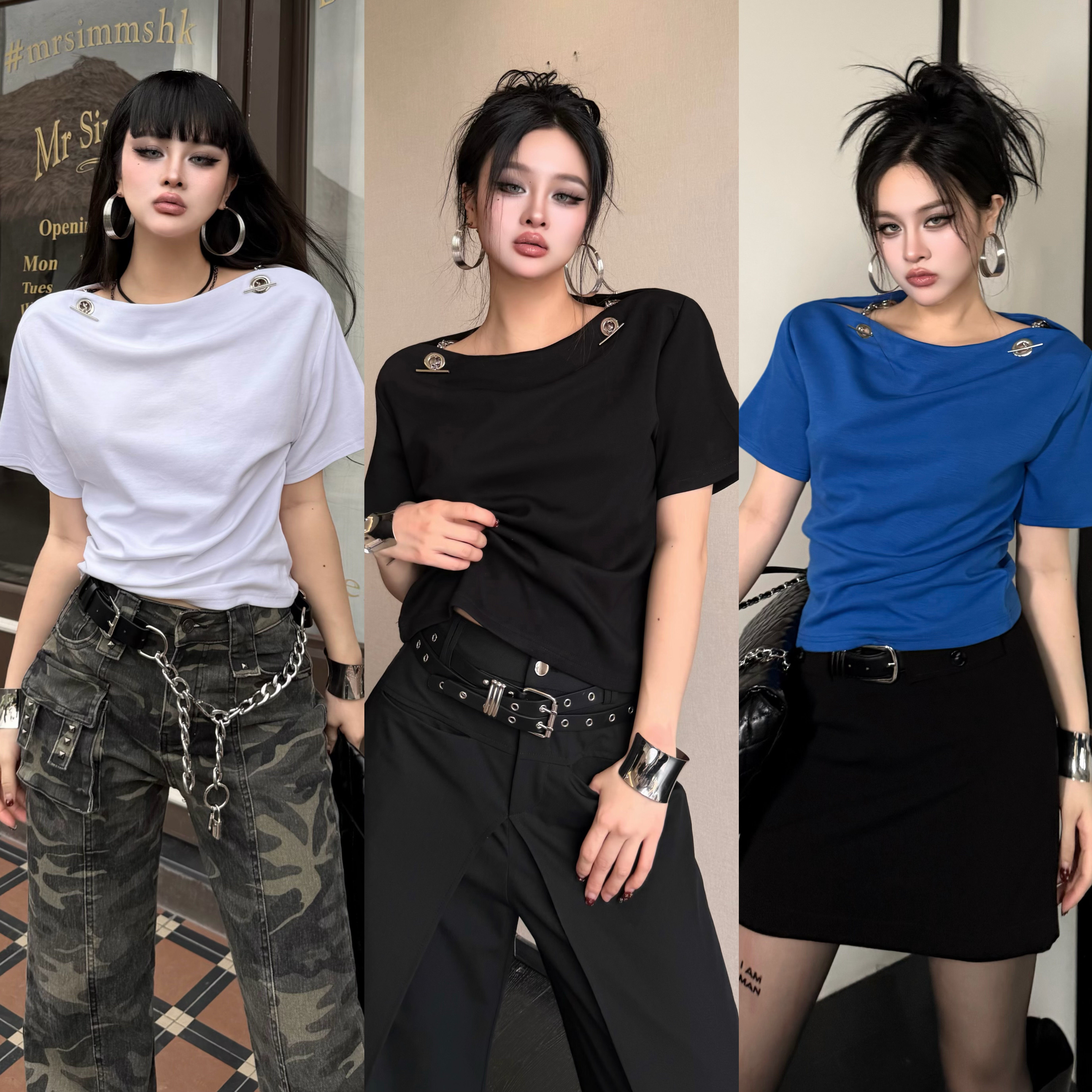 📚 Blackgirl【纯辣艺人】夏季百搭T恤领口小心机设计显瘦纯色短袖