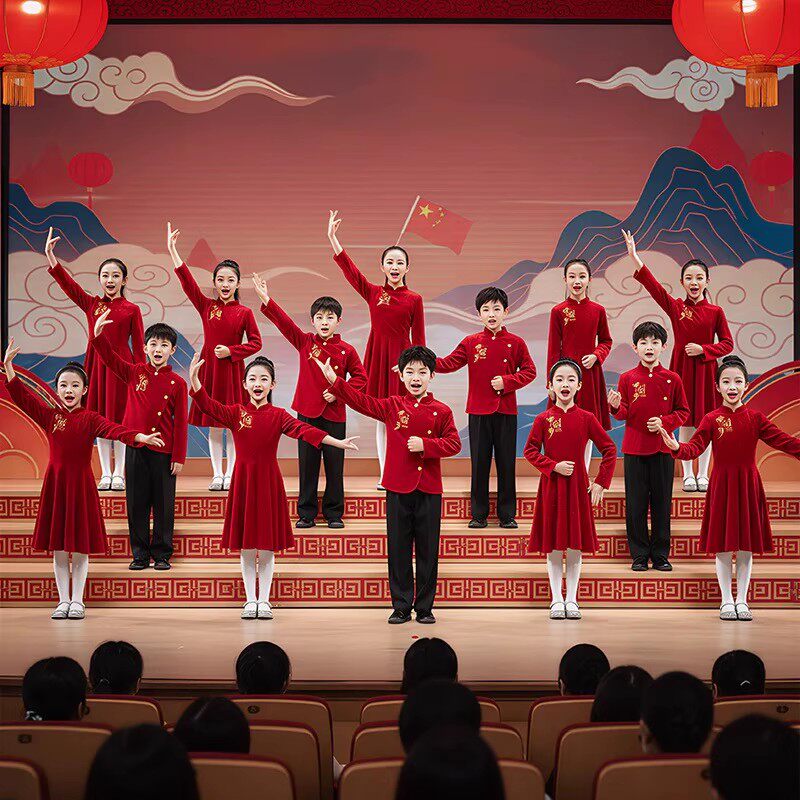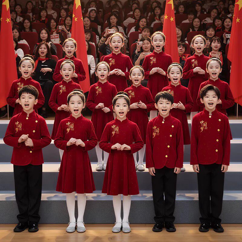 📚 元旦儿童演出服红色爱国表演服唱红歌小学生合唱服男女童歌唱祖国