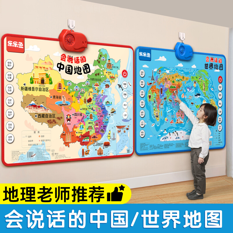📚 2024版会说话的中国地图和世界地图早教有声挂图儿童益智启蒙玩具