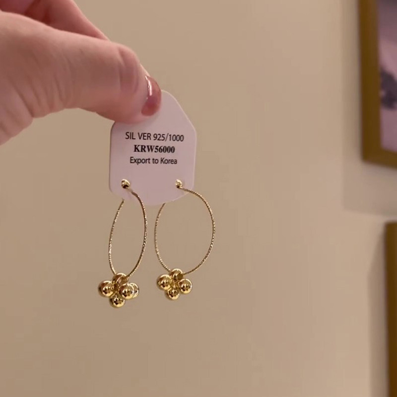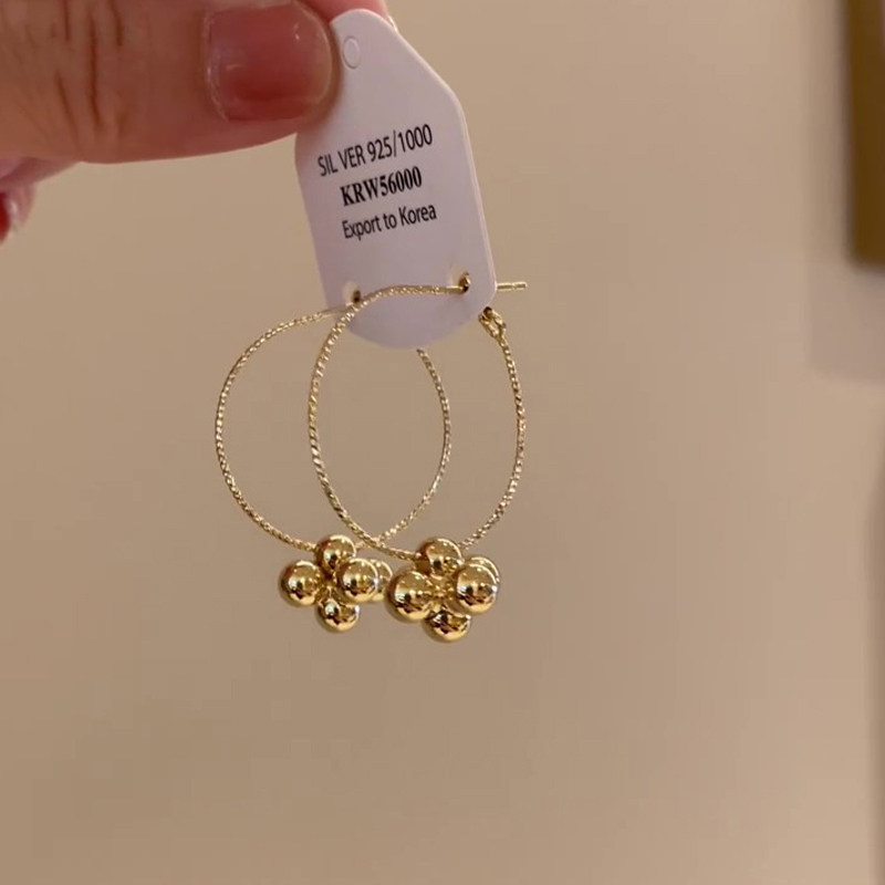 📚 金色花球耳环女2025新款轻奢小众气质耳圈高级感独特夸张素圈耳饰