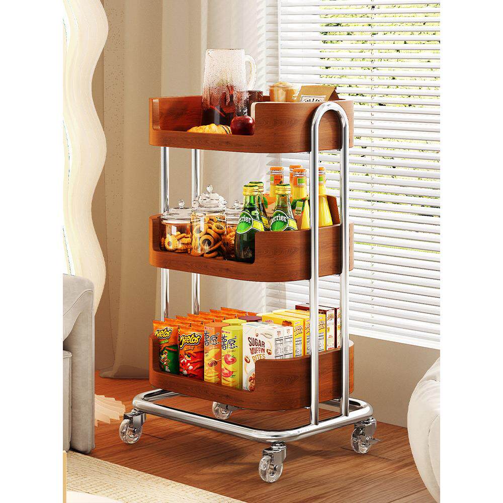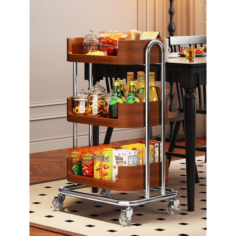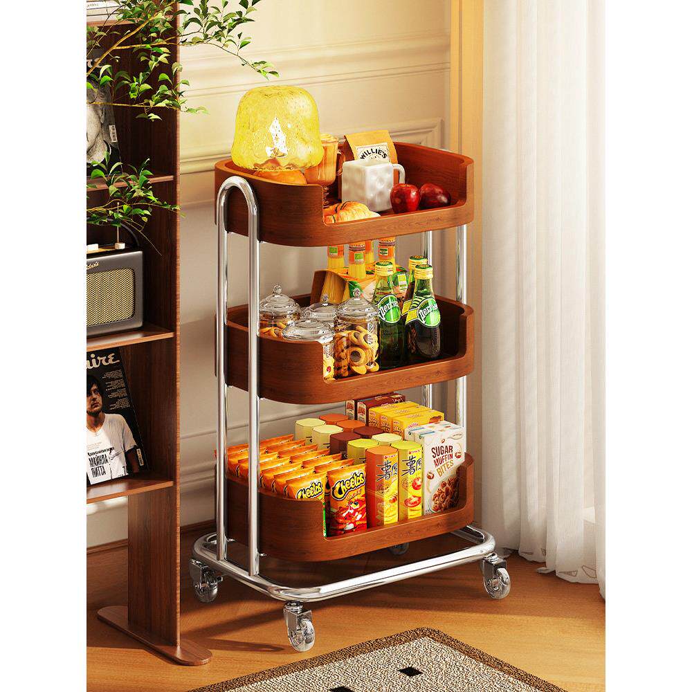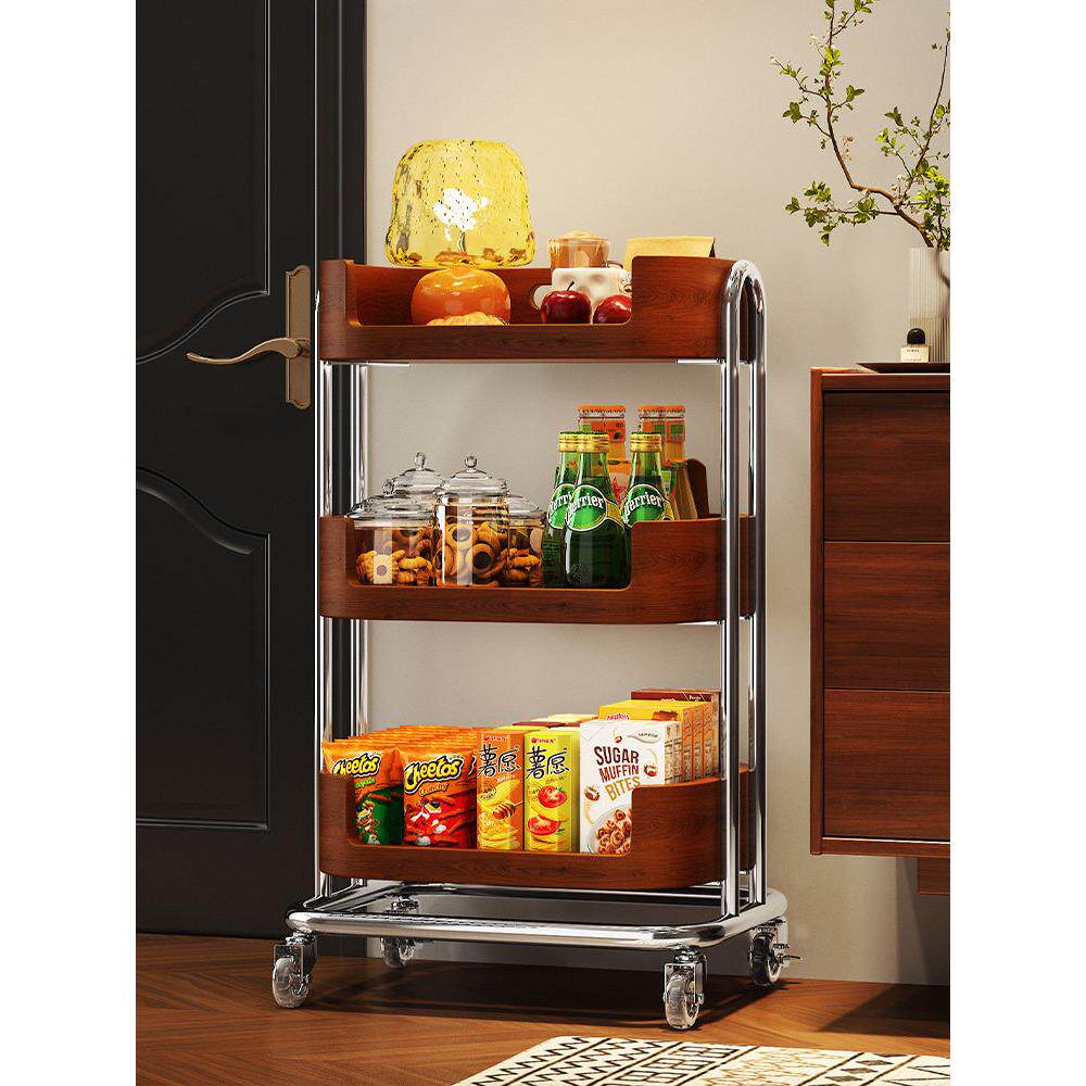 📚 中古风小推车客厅沙发边几茶几可移动带轮储物架零食水果置物架子