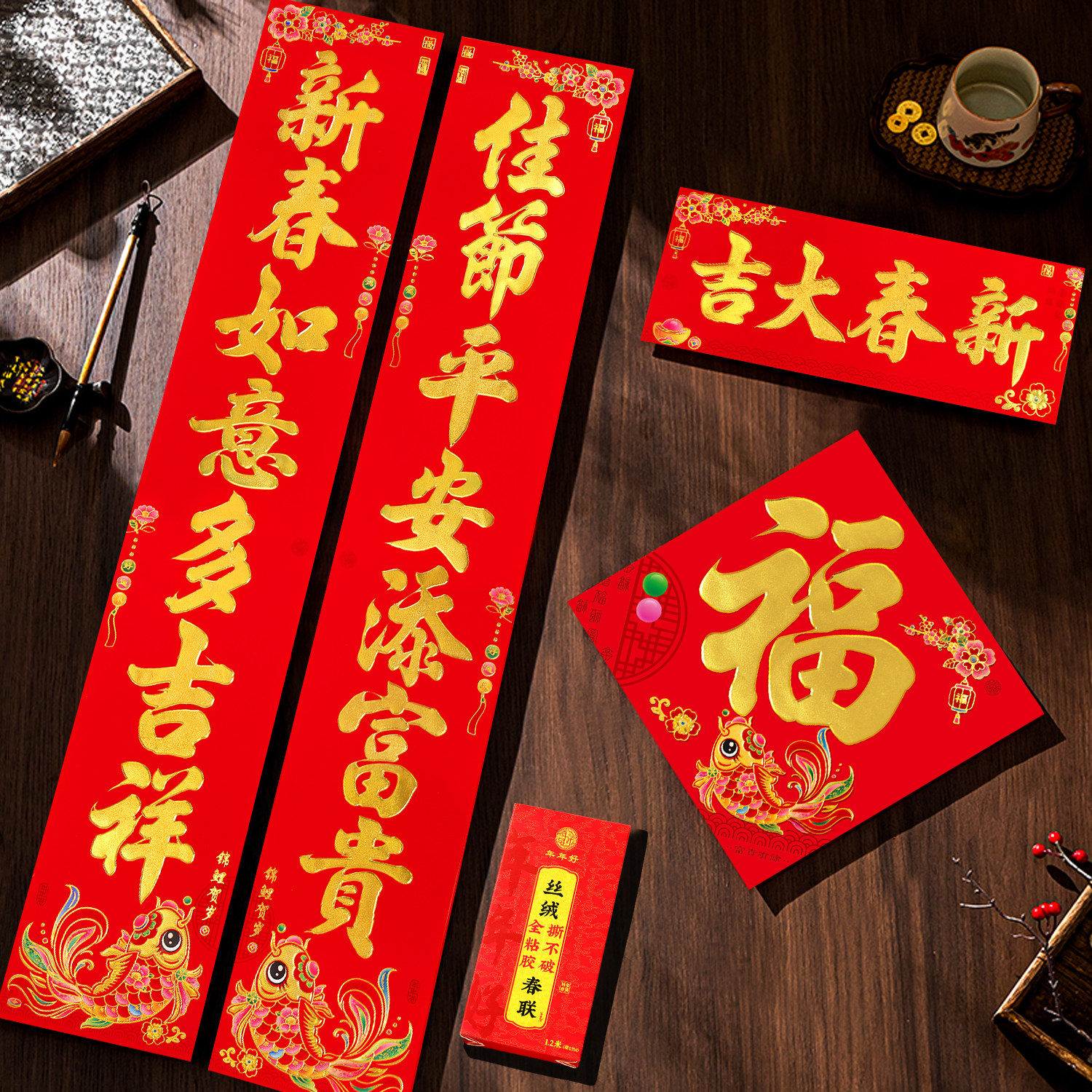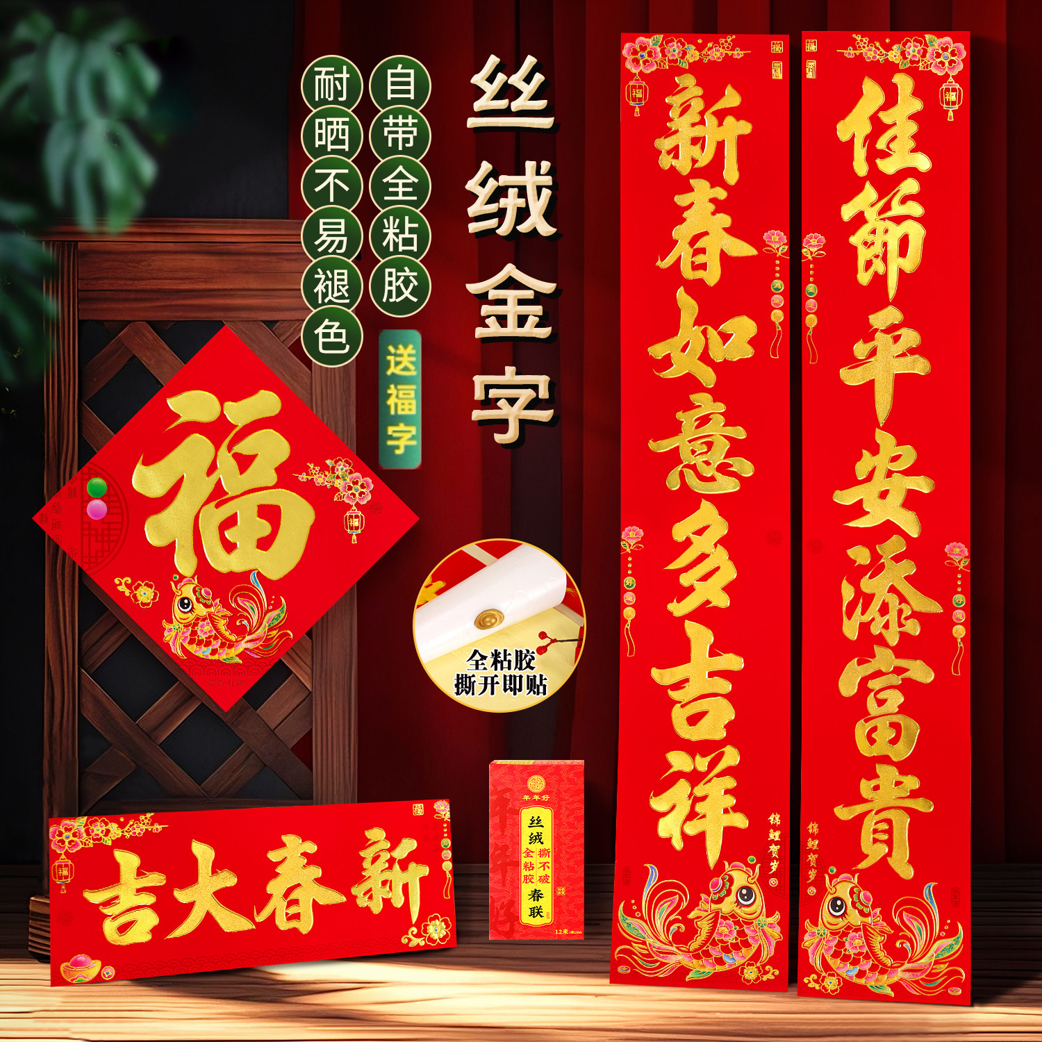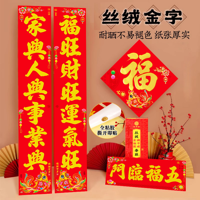 📚 2026新款丝绒书法烫金字耐晒不易褪色对联马年农村自建房大门装饰