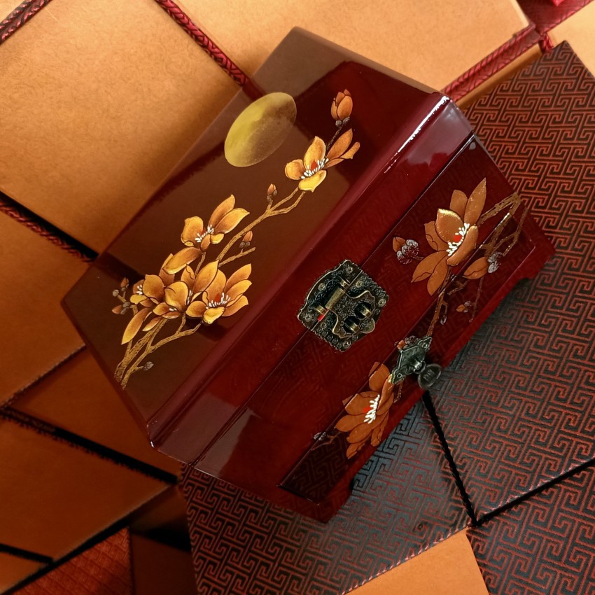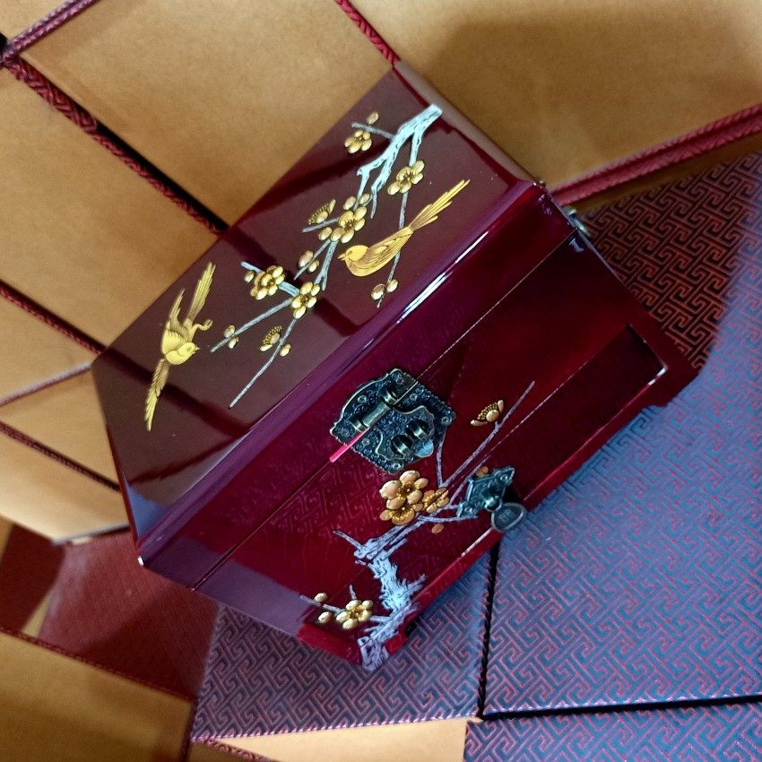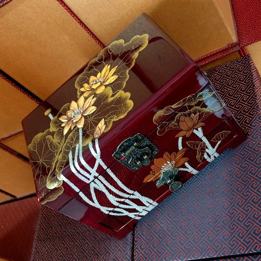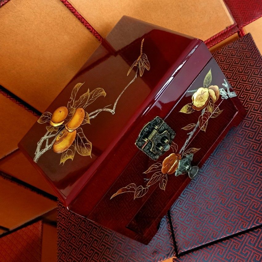 📚 贴金彩绘首饰盒合成大漆高堆漆画收纳盒推光漆器新娘妆奁非遗礼品
