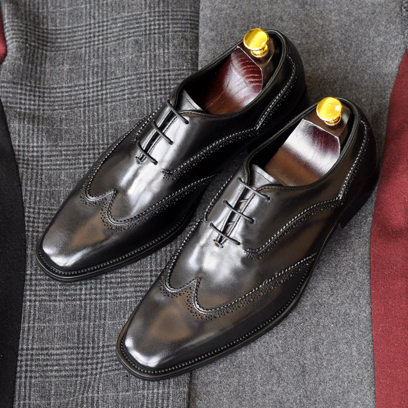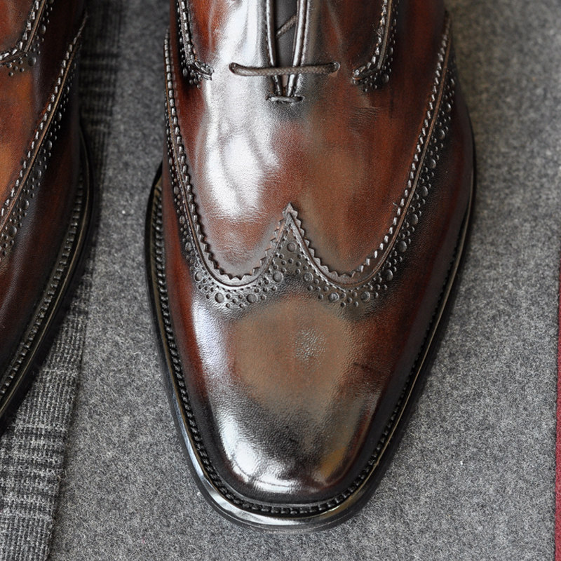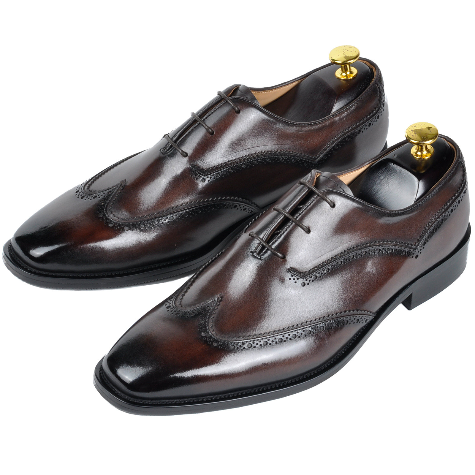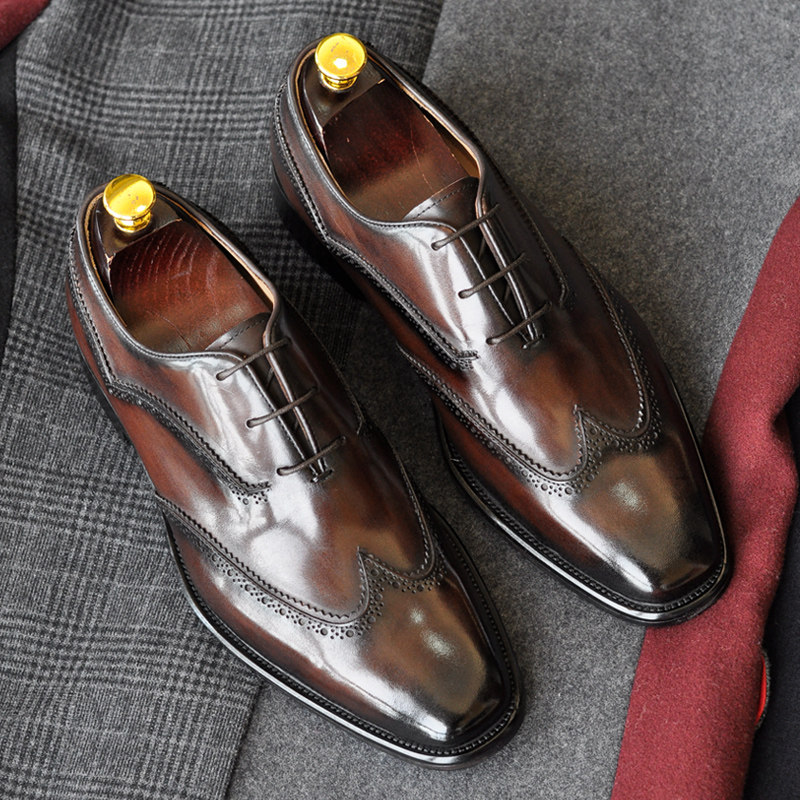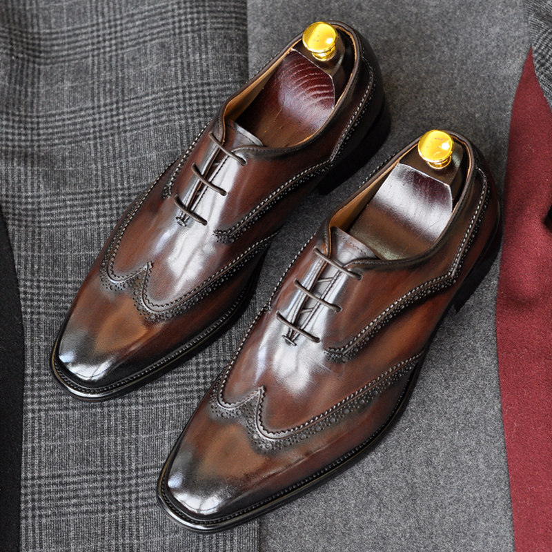 📚 意大利宽楦手工擦色真皮男士商务正装皮鞋英伦牛津鞋时尚脚宽婚鞋