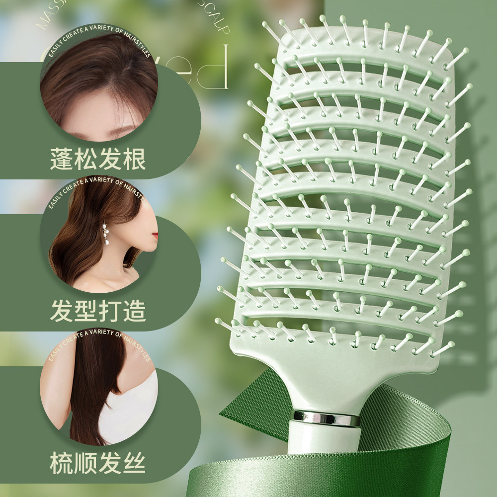 📚 按摩排骨梳女士专用长发高颅顶发根蓬松造型镂空头梳卷发大弯梳子